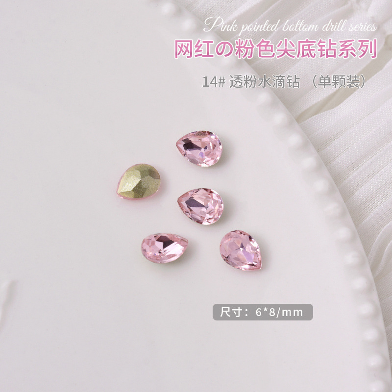• 14 내추럴 컬러 핑크 크리스탈 100개[물방울 6*8]