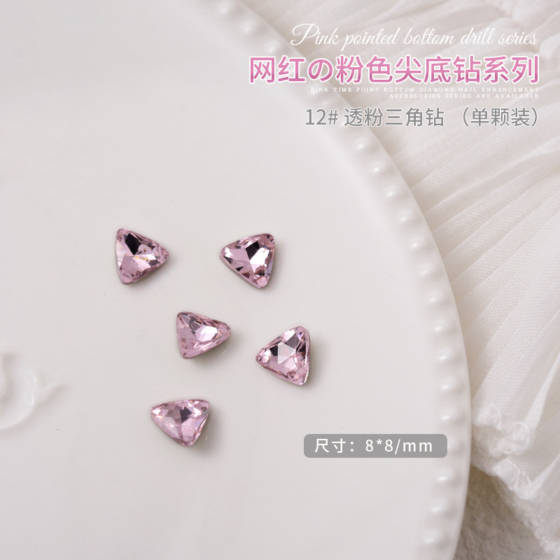 • 12 오리지널 컬러 핑크 크리스탈 100개 [삼각형 8MM]