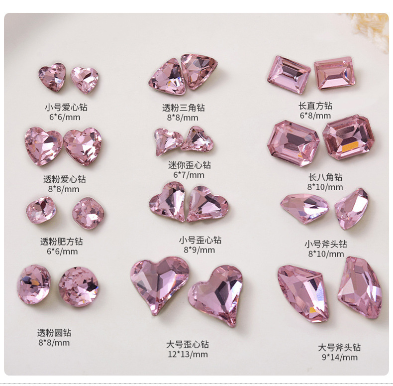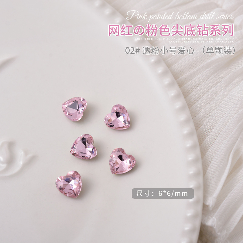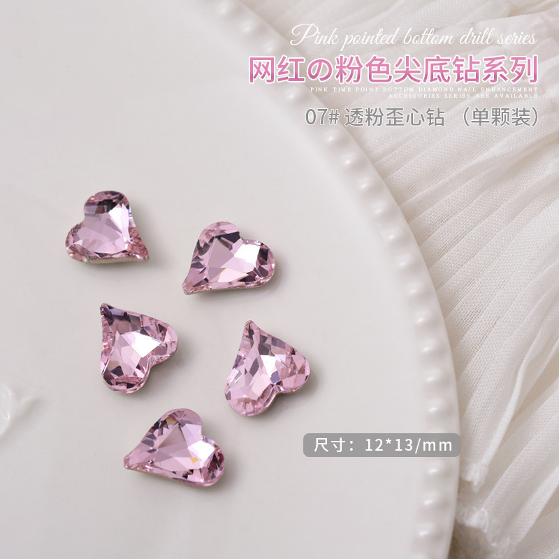 네일 아트 장식 핑크색 뾰족한 하트 모양 다이아몬드 네일 액세서리 매우 반짝이는 편심 하트 다면체 유리 다이아몬드 장식 반짝이 다이아몬드스토어 가기