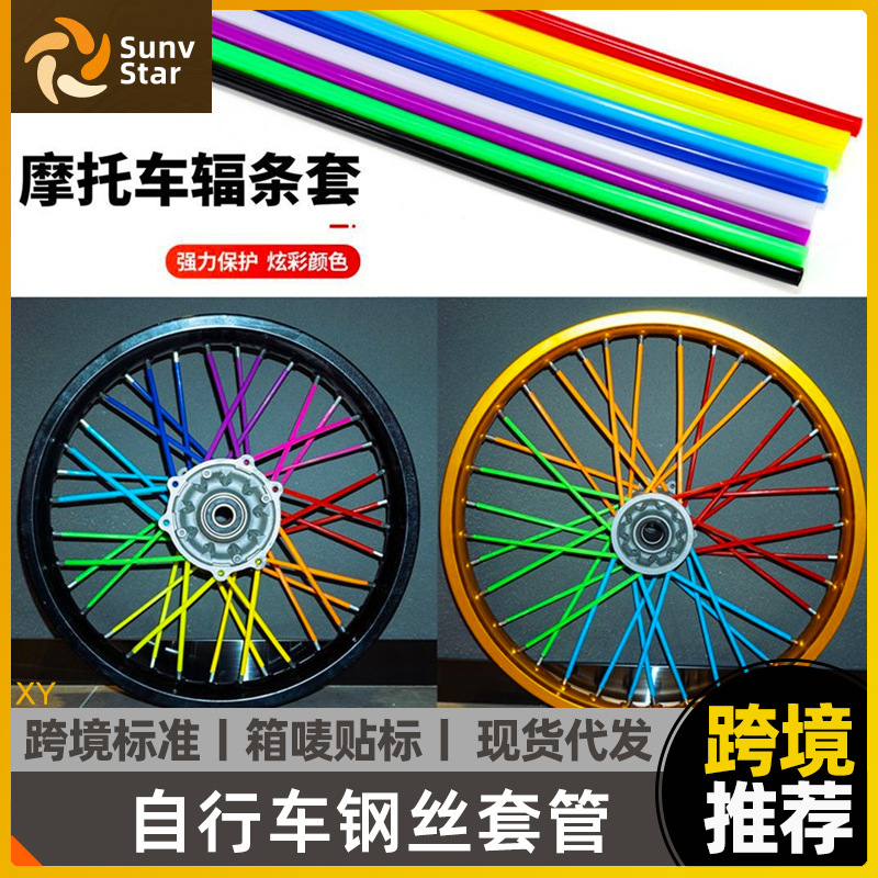 오프로드 차량 오토바이 스포크 슬리브 유니버설 휠 컬러 스포크 산악 자전거 자전거 스틸 와이어 장식 국경스토어 가기