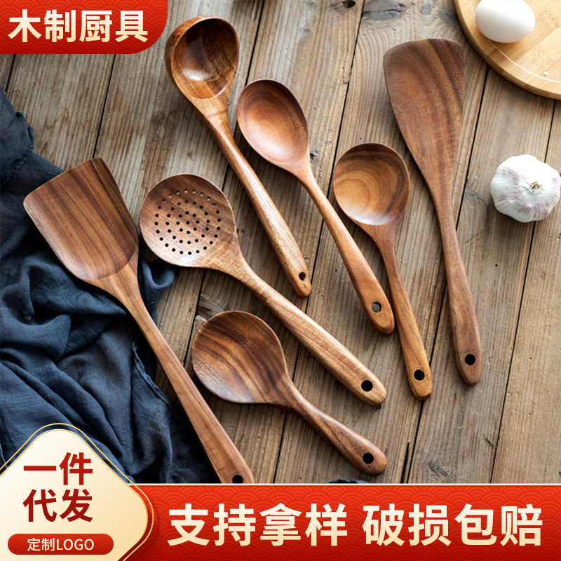 티크 나무 비 스틱 조리기구 나무 삽 긴 손잡이 삽 야채 삽 전단지 아카시아 요리 세트 주방 도구