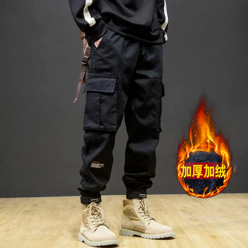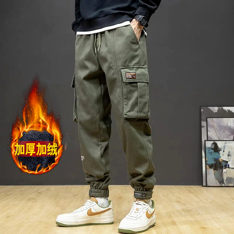 가을과 겨울 미국 복고풍 바지 바지 남성 기모 캐주얼 남성 바지 2024 새로운 플러스 사이즈 느슨한 바지 남성스토어 가기