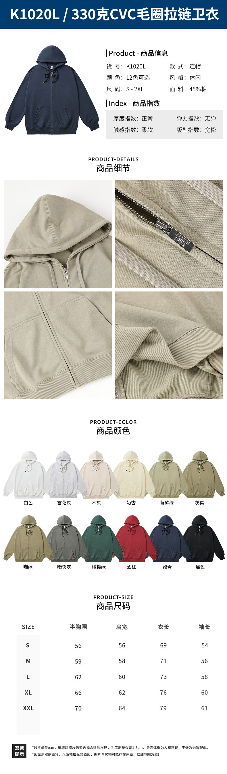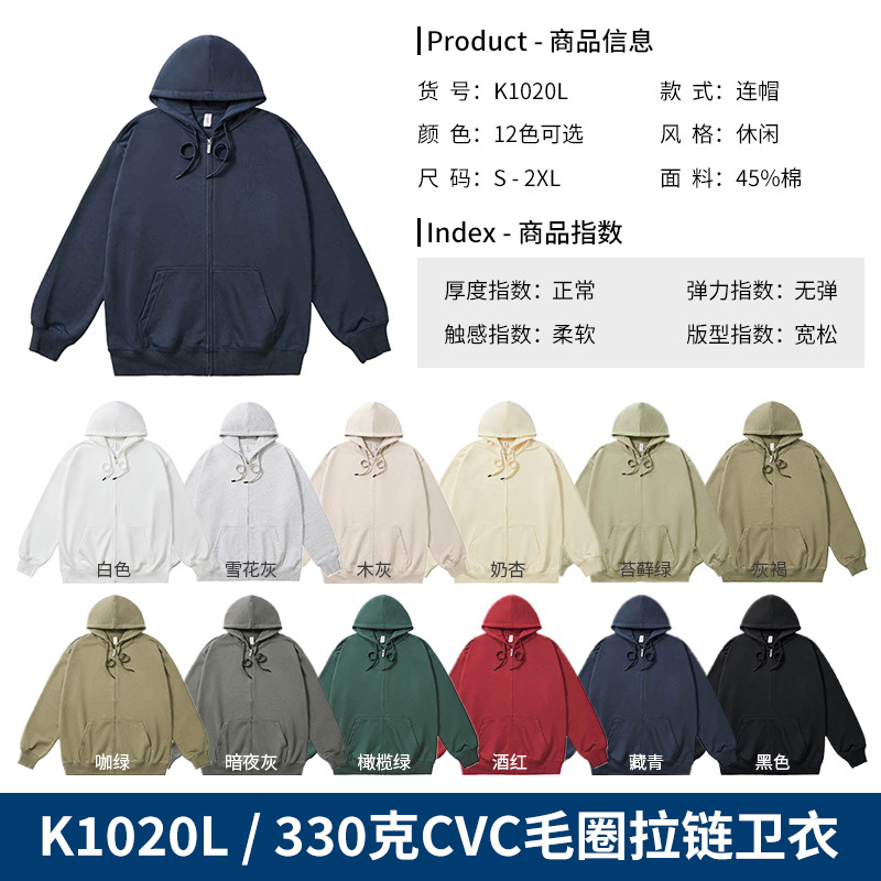 • K1020L-330g CVC 테리 지퍼 스웨트셔츠