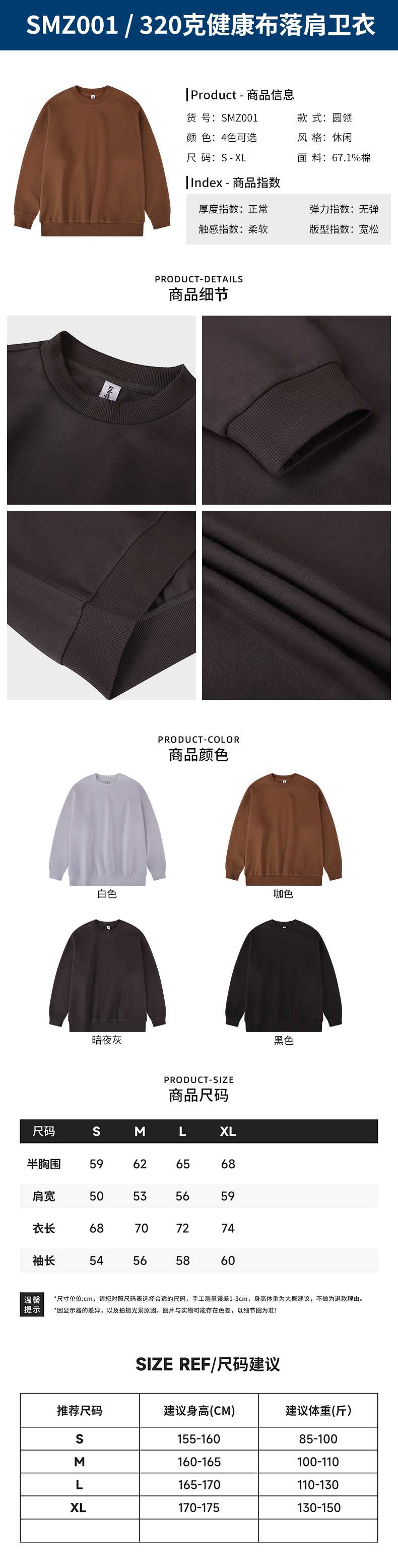 • SMZ001-320g 건강한 천 드롭 숄더 스웨트셔츠