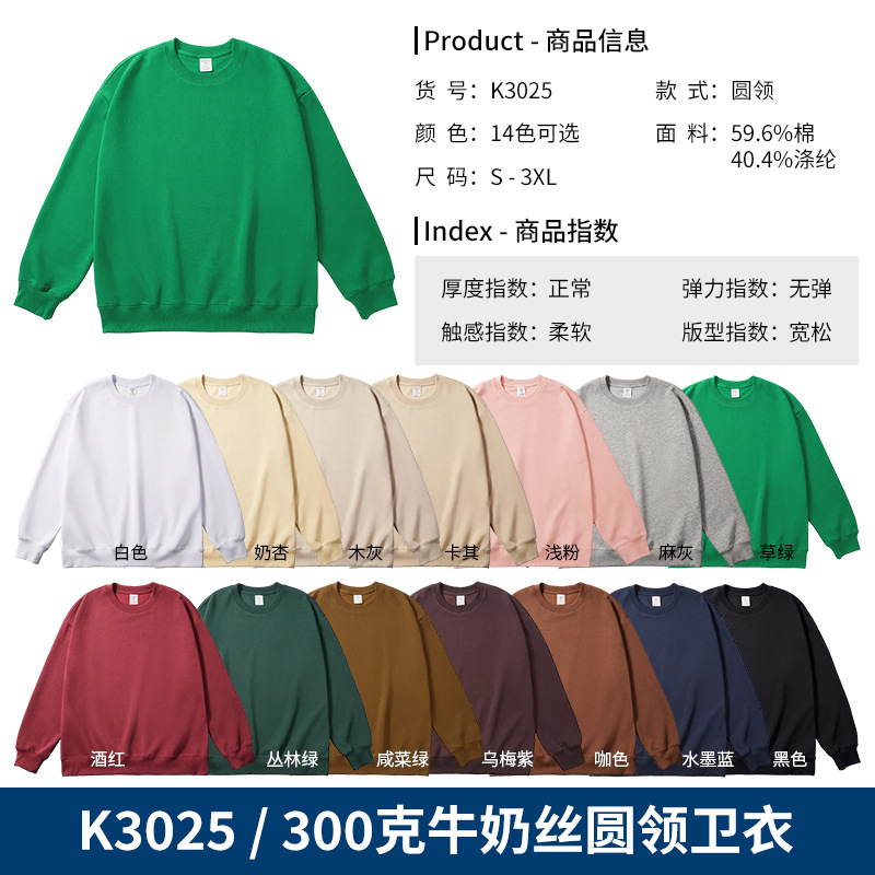 • K3025-300g 밀크 실크 라운드넥 스웨트셔츠