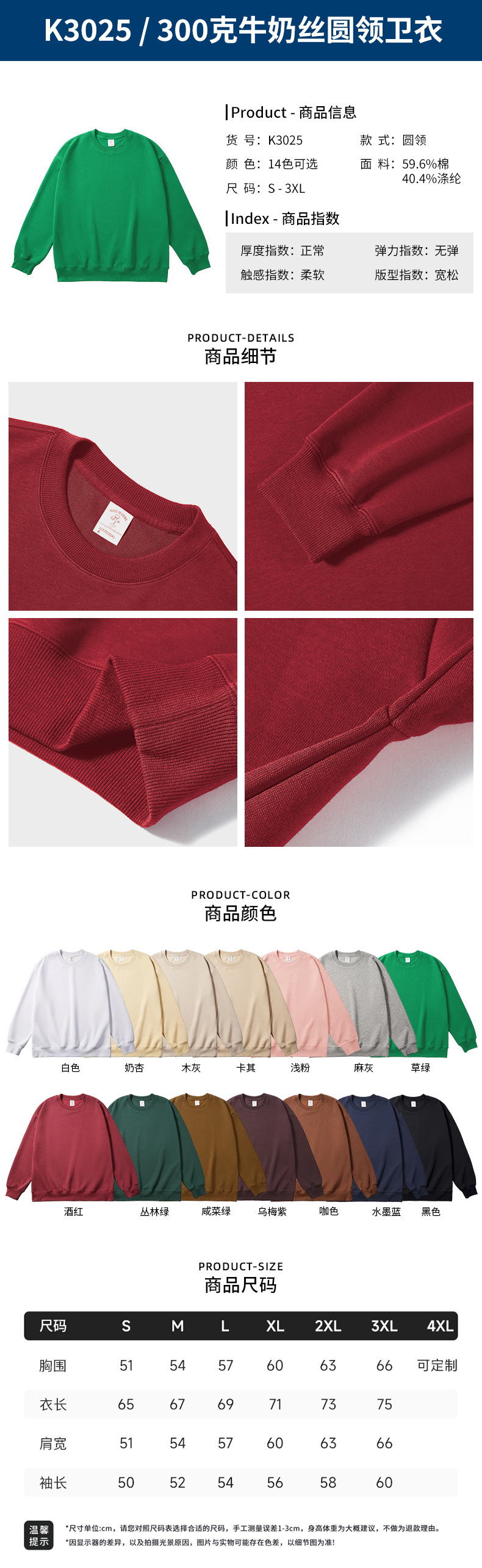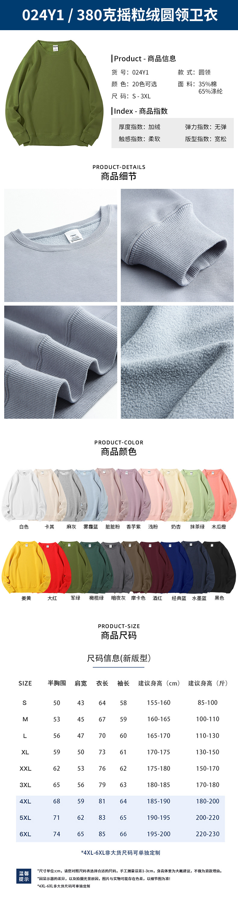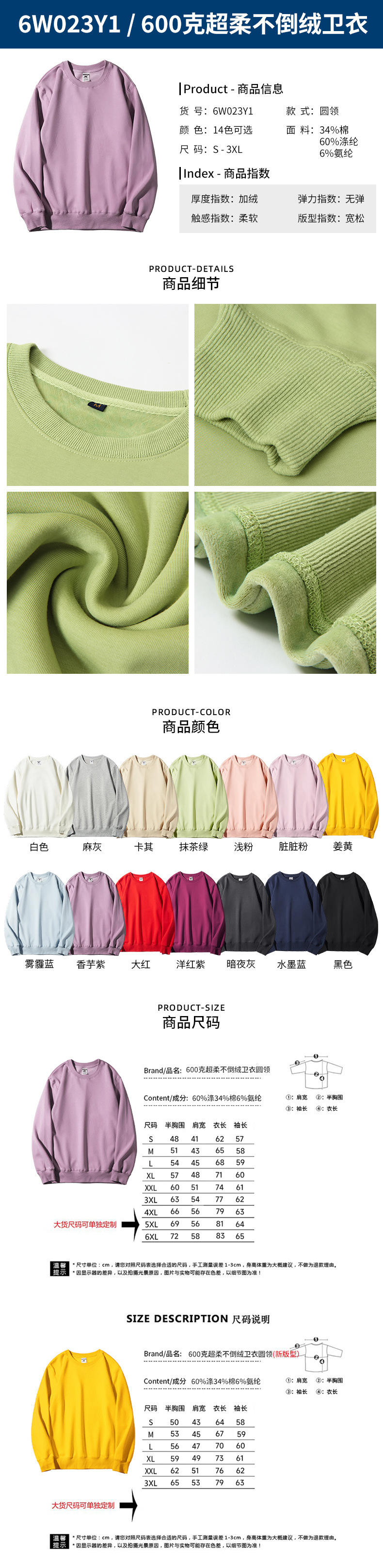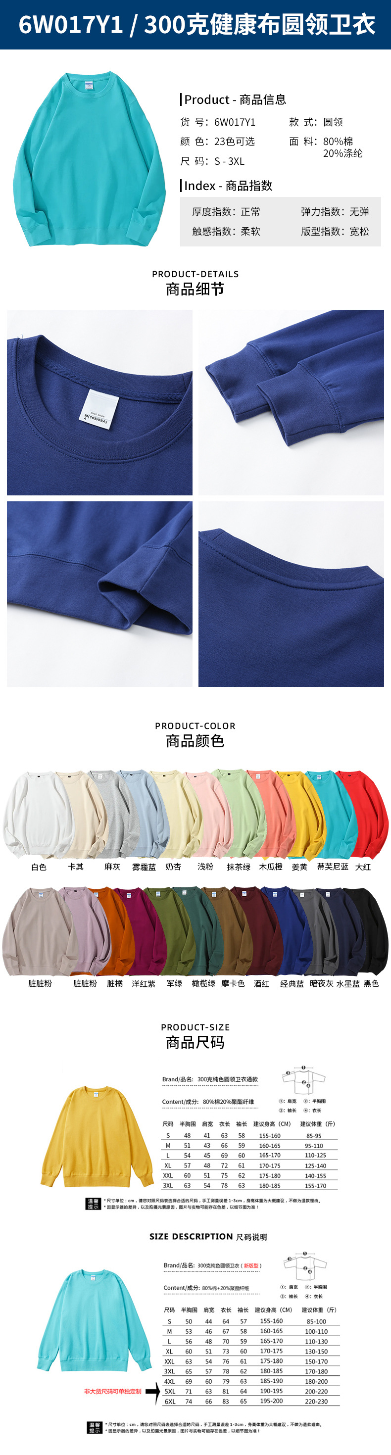 • 6W017Y1-300g 건강한 천 라운드 넥 스웨트셔츠