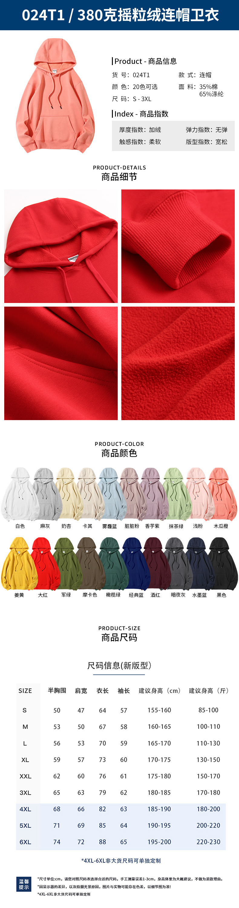 • 024T1-380g 폴라 플리스 후드 스웨트셔츠