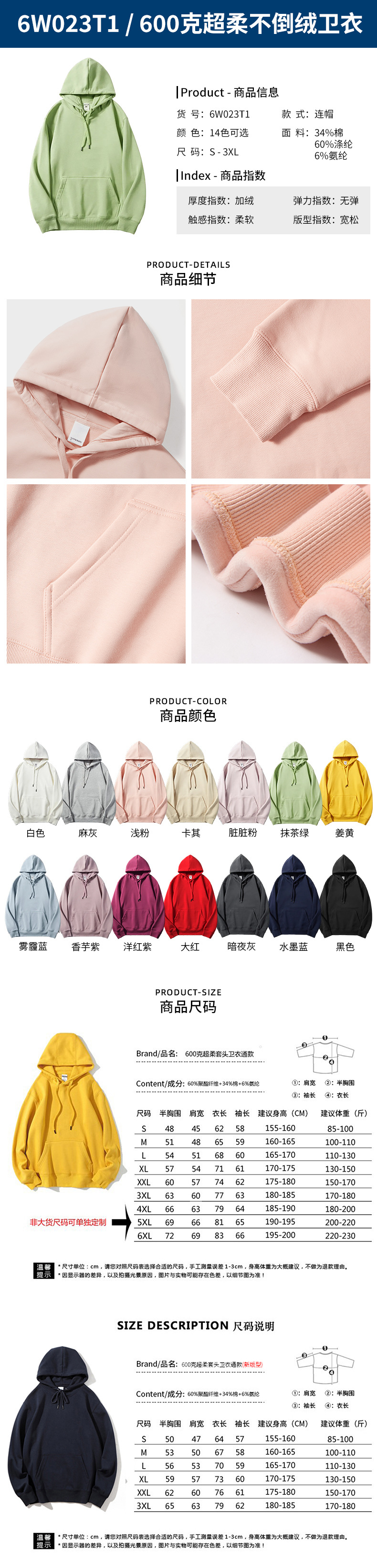 • 6W023T1-600g 매우 부드러운 벨벳 스웨트셔츠