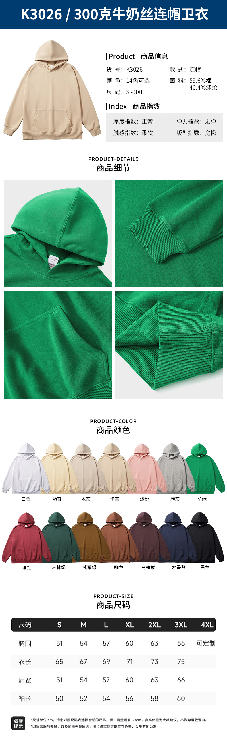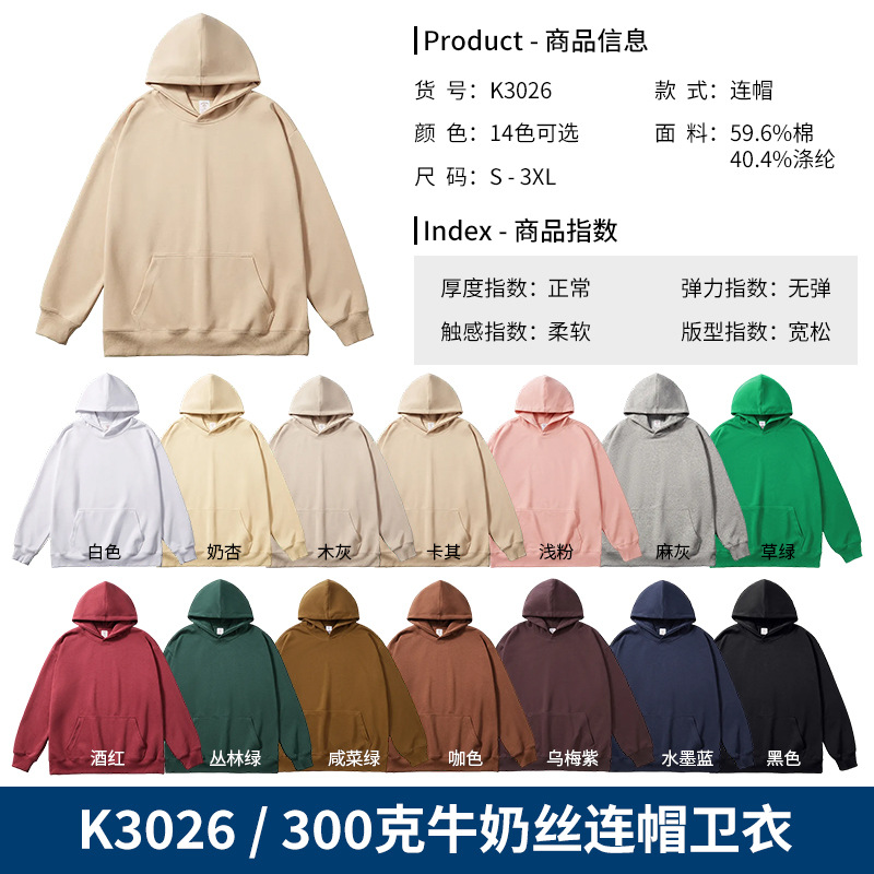 • K3026-300g 밀크 실크 후드 스웨트셔츠