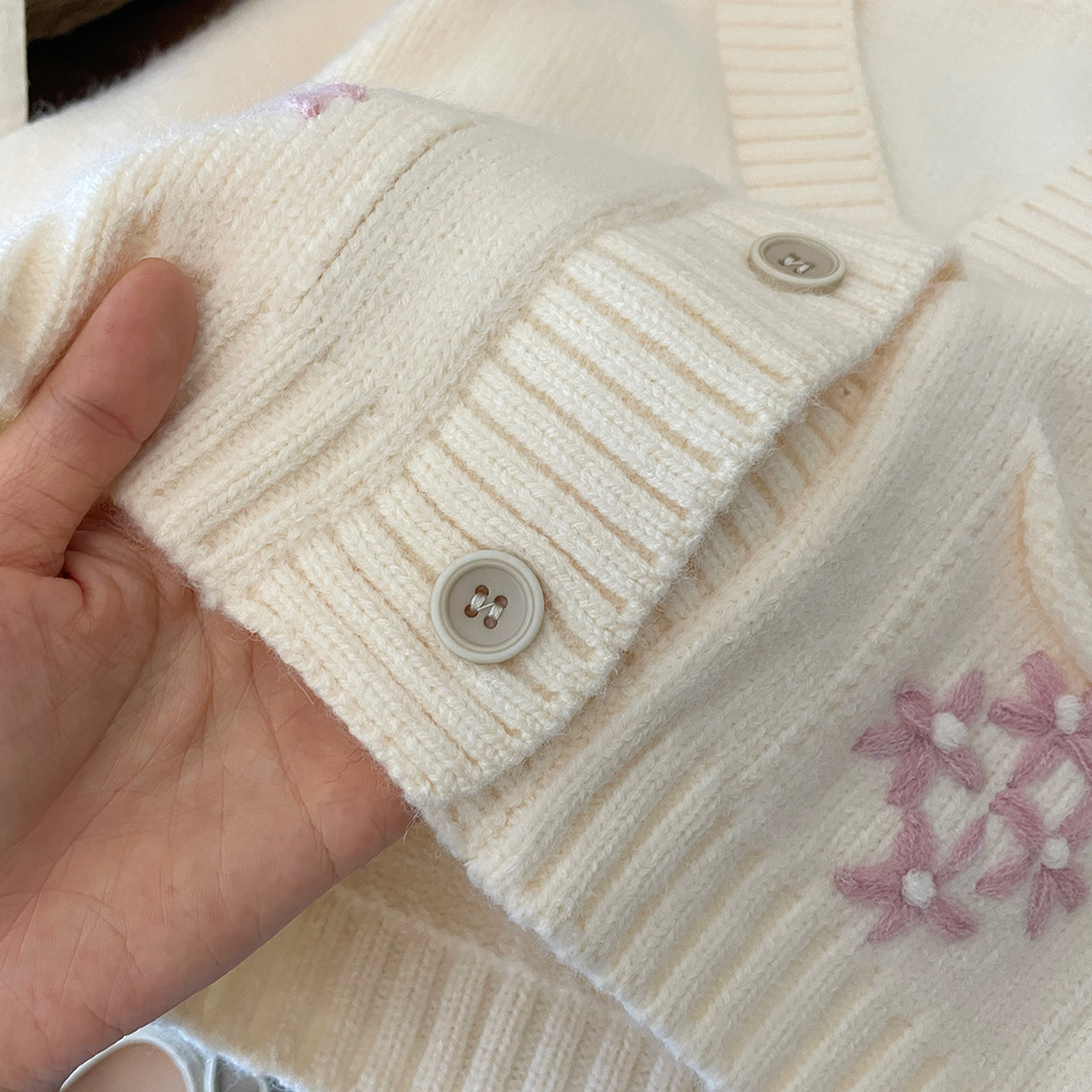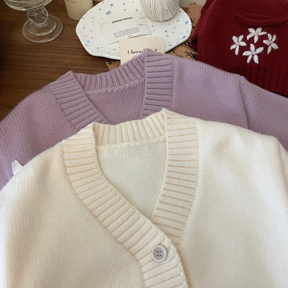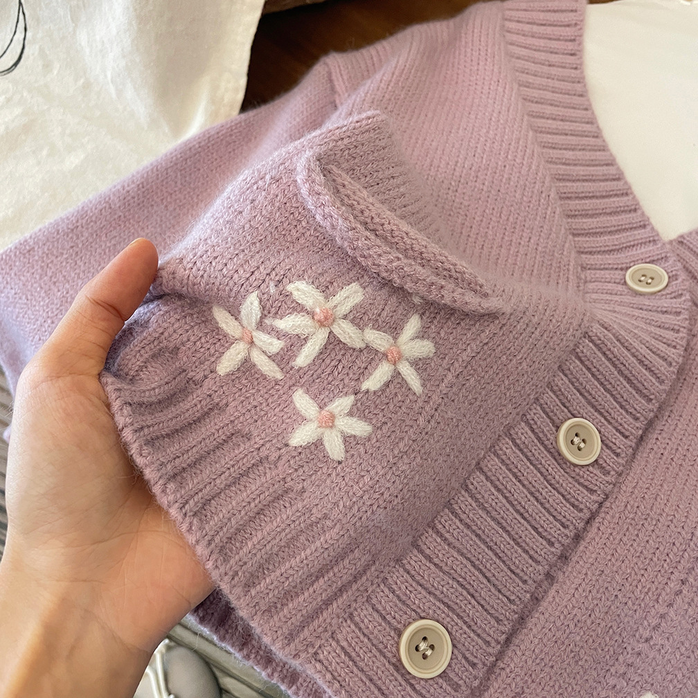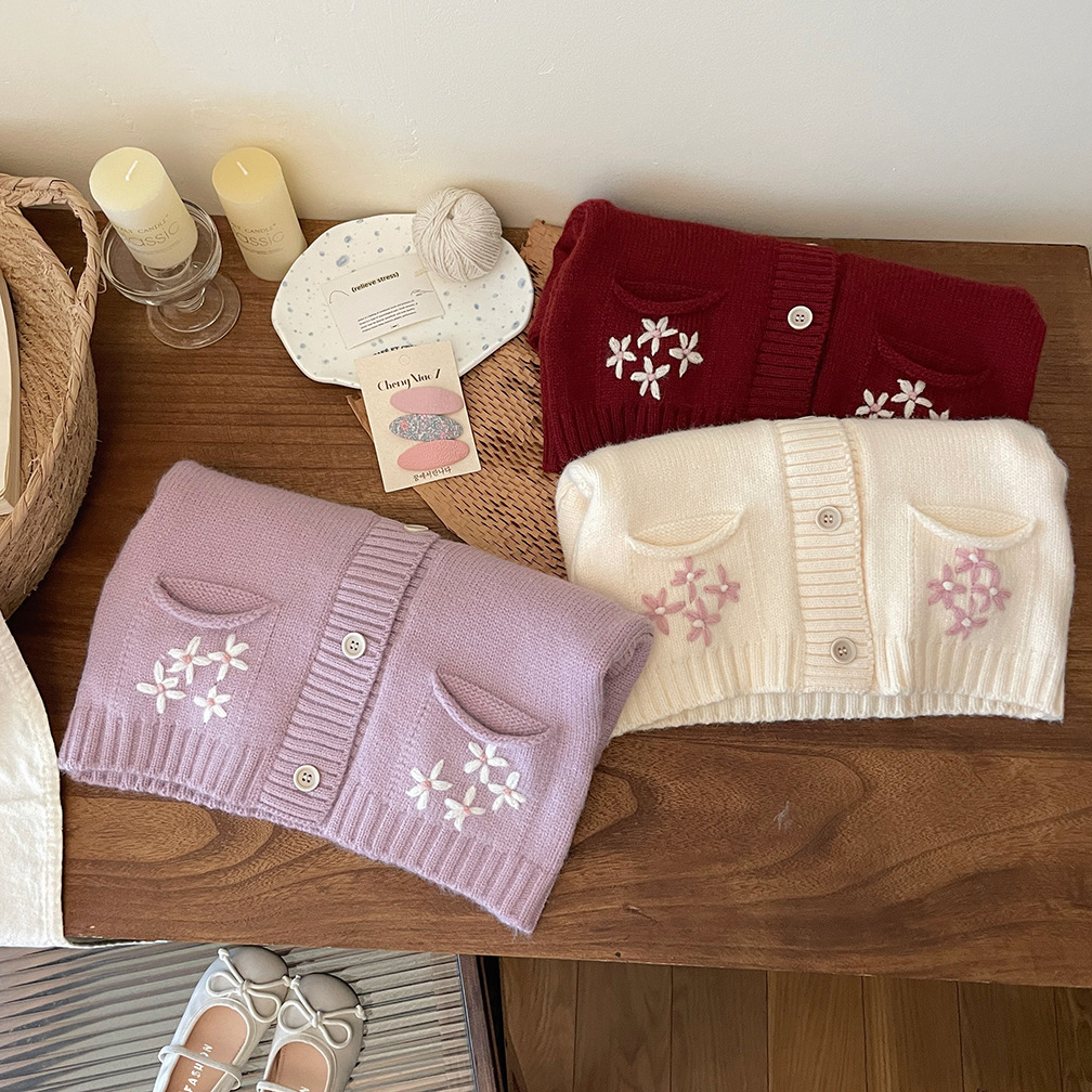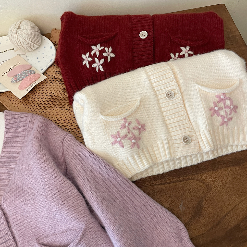 한국 스타일 아동 의류 소녀 스웨터 재킷 2025 가을, 겨울 새로운 어린이 수제 크로 셰 뜨개질 V 넥 니트 카디건 탑스토어 가기