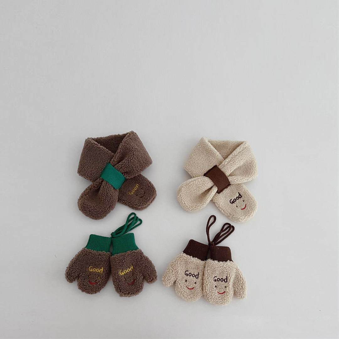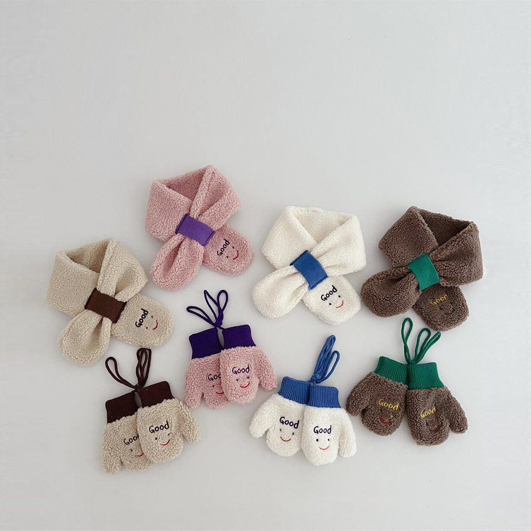 한국 어린이 스카프 장갑 겨울 새 얼굴 웃는 얼굴 소년 소녀 아기의 전체 손가락 목 장갑