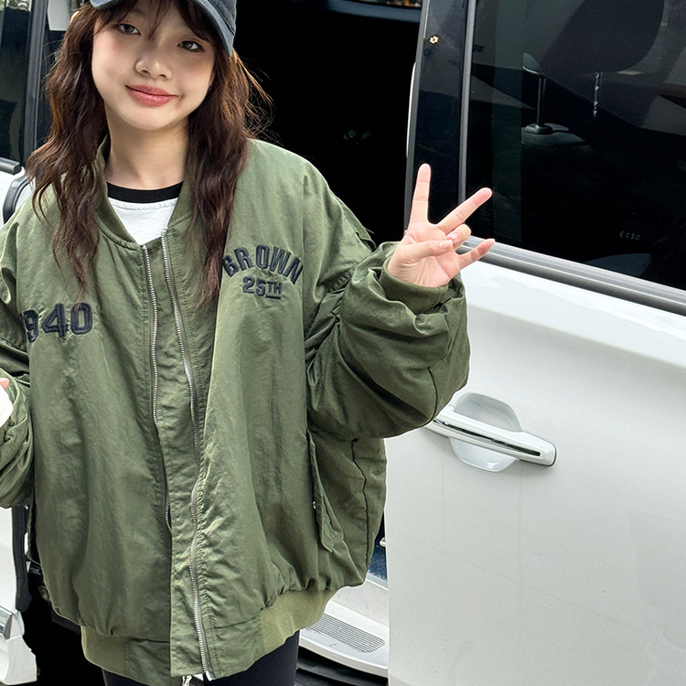 여아 면 패딩 의류, 아동용 세련된 자수 두꺼운 야구 재킷, 가을 겨울 재킷, 2024년 신형 아동용 재킷 상의