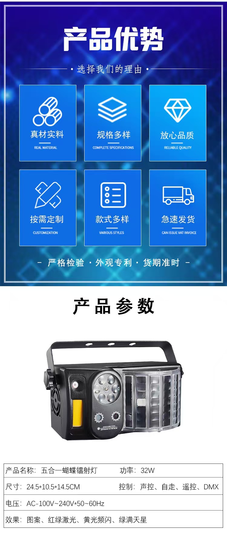 5 대 1 나비 램프 KTV 대기 램프 음성 제어 컬러 램프 회전 램프 패턴 레이저 램프 레이저 램프 디스코 플래시