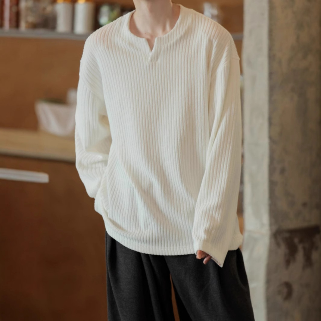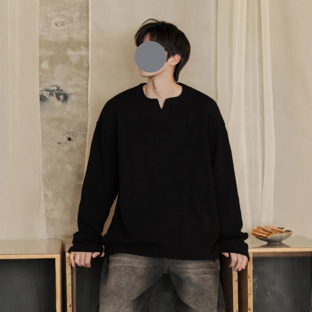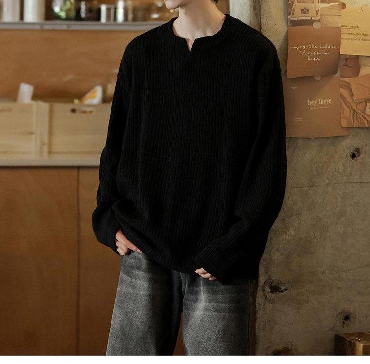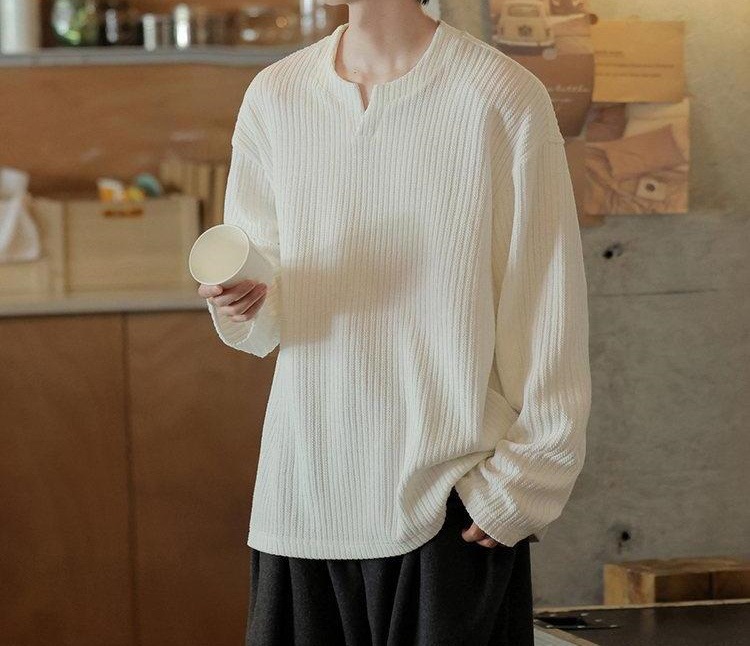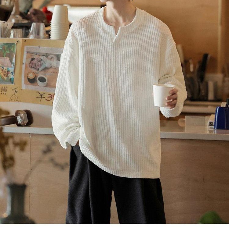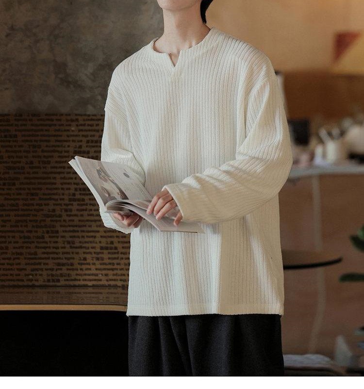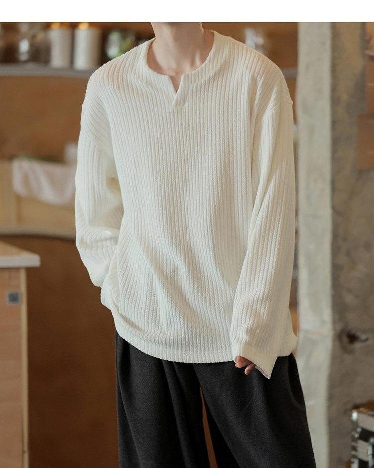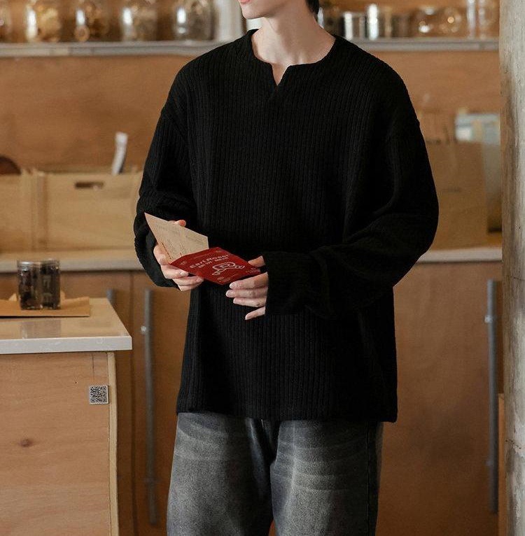 게으른 스타일 질감 감각 작은 V 넥 긴팔 티셔츠 남성 봄과 가을 내베이스 셔츠 웨이 옷 미국 스타일 유행 브랜드 루즈
