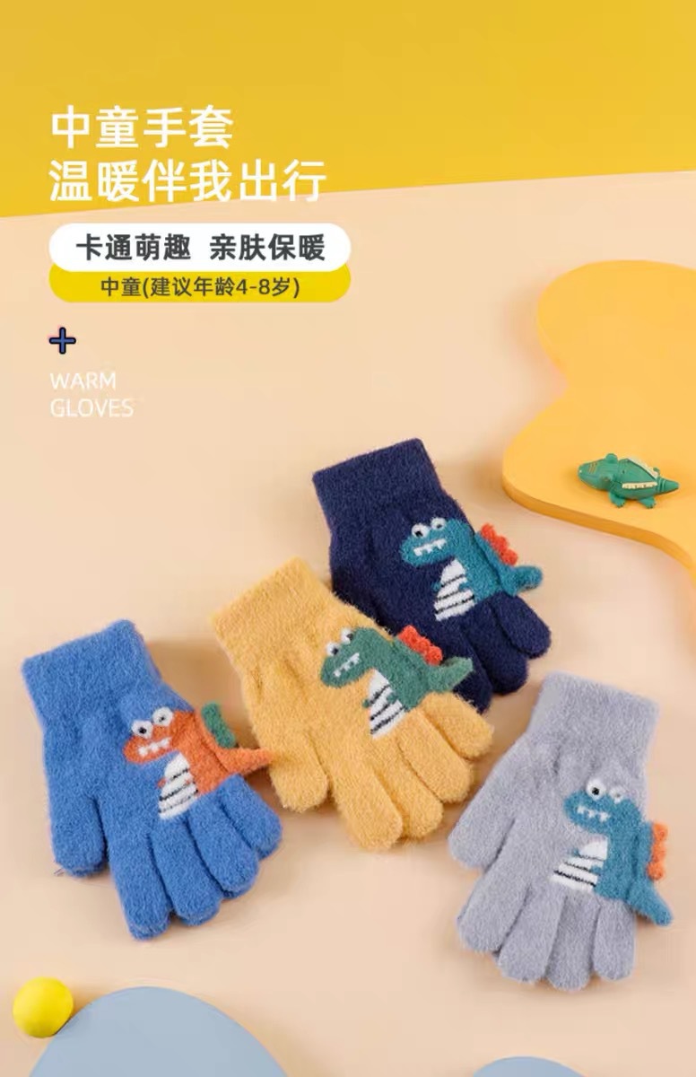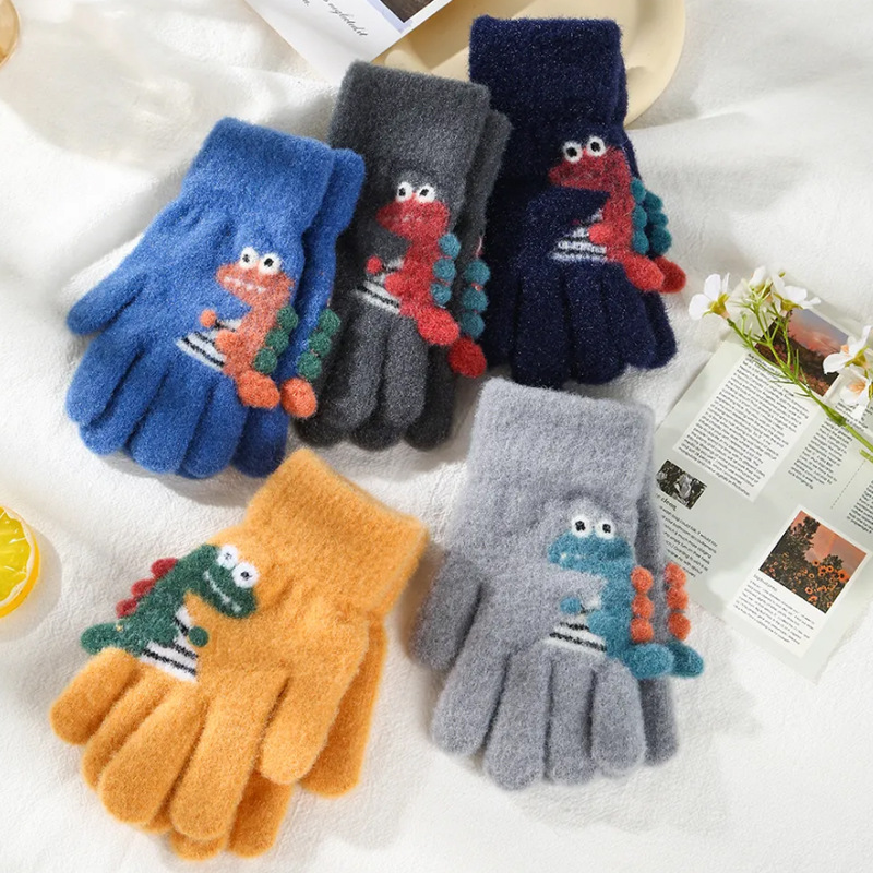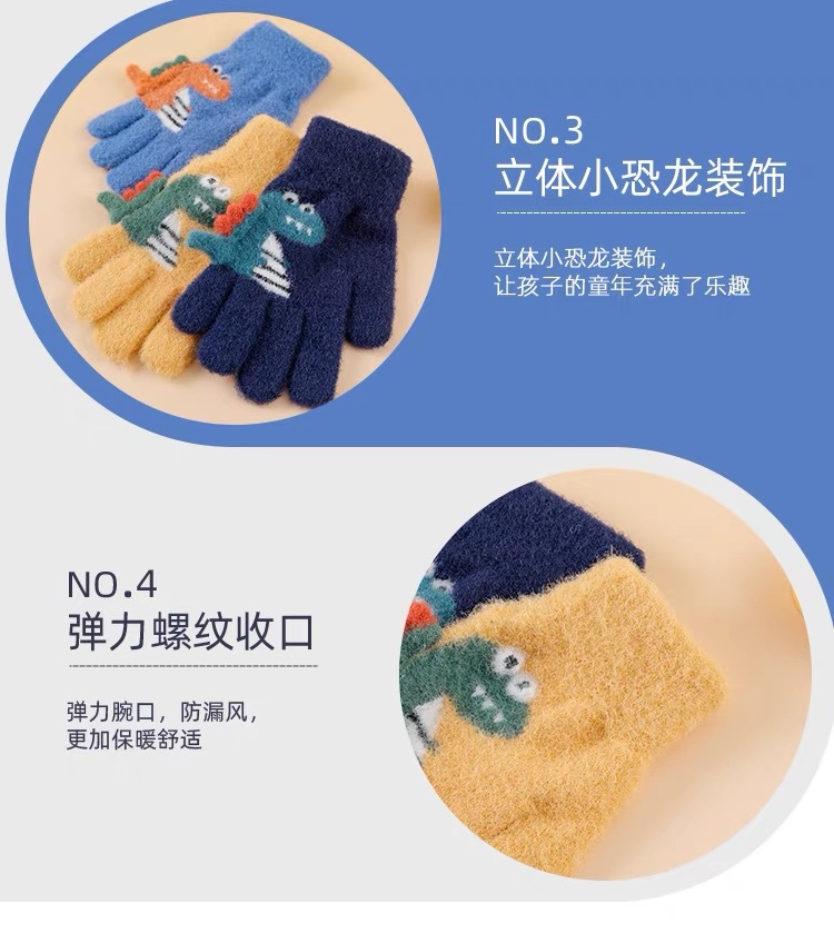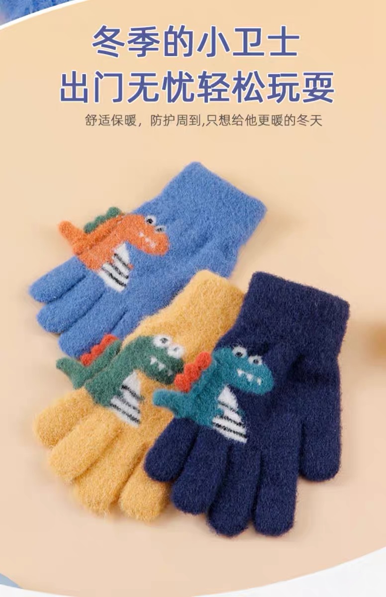 가을 겨울 따뜻한 장갑 유치원 학생 한국 스타일 귀여운 만화 3 차원 공룡 기모 겨울 장갑 두꺼운스토어 가기