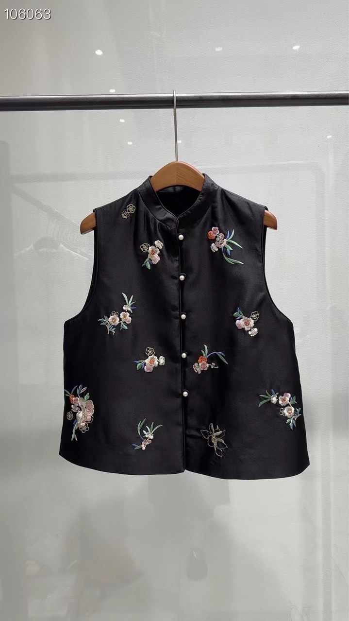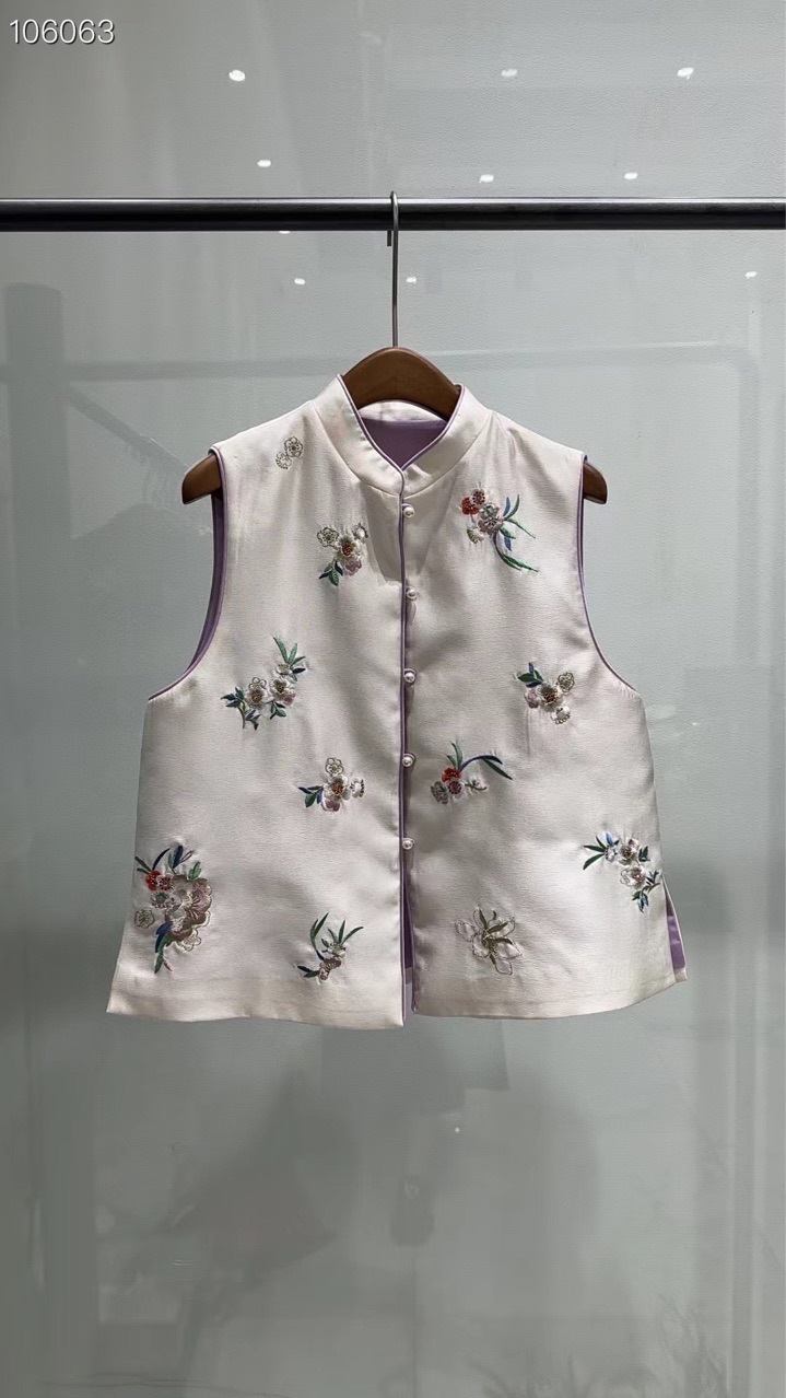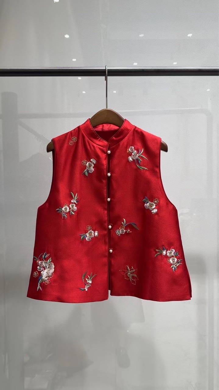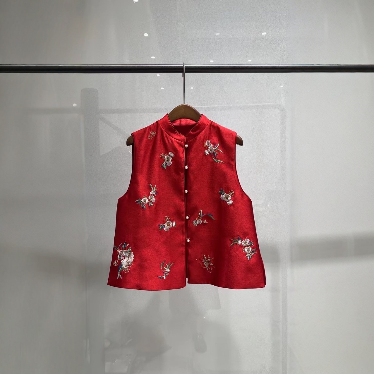 [잠언] 2426 새로운 중국 복고풍 신선한 간단한 꽃 실크 울 자수 조끼 여성 탑