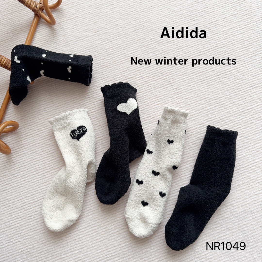 사랑 진드기 겨울 새로운 어린이 양말 산호 양털 두꺼운 따뜻한 흑백 만화 사랑 소녀 양말스토어 가기
