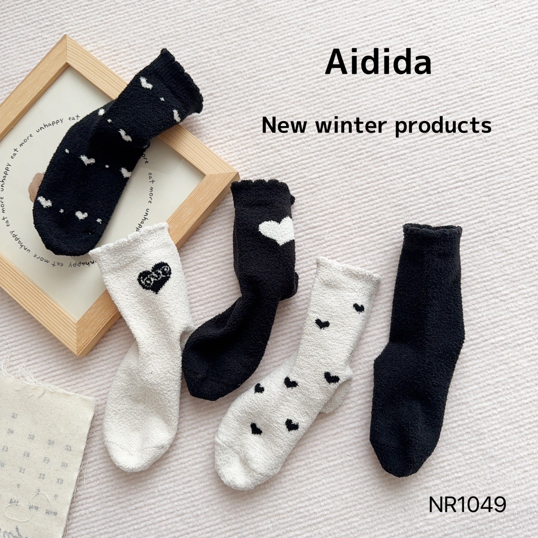 사랑 진드기 겨울 새로운 어린이 양말 산호 양털 두꺼운 따뜻한 흑백 만화 사랑 소녀 양말