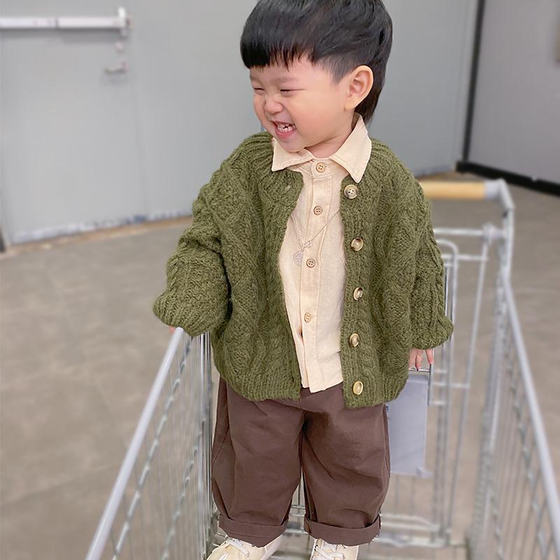 슈퍼 한국 스타일 라운드 넥 게으른 스타일 어린이 트위스트 스웨터 베이비 소년과 소녀 레트로 니트 스웨터 카디건 코트 봄과 가을