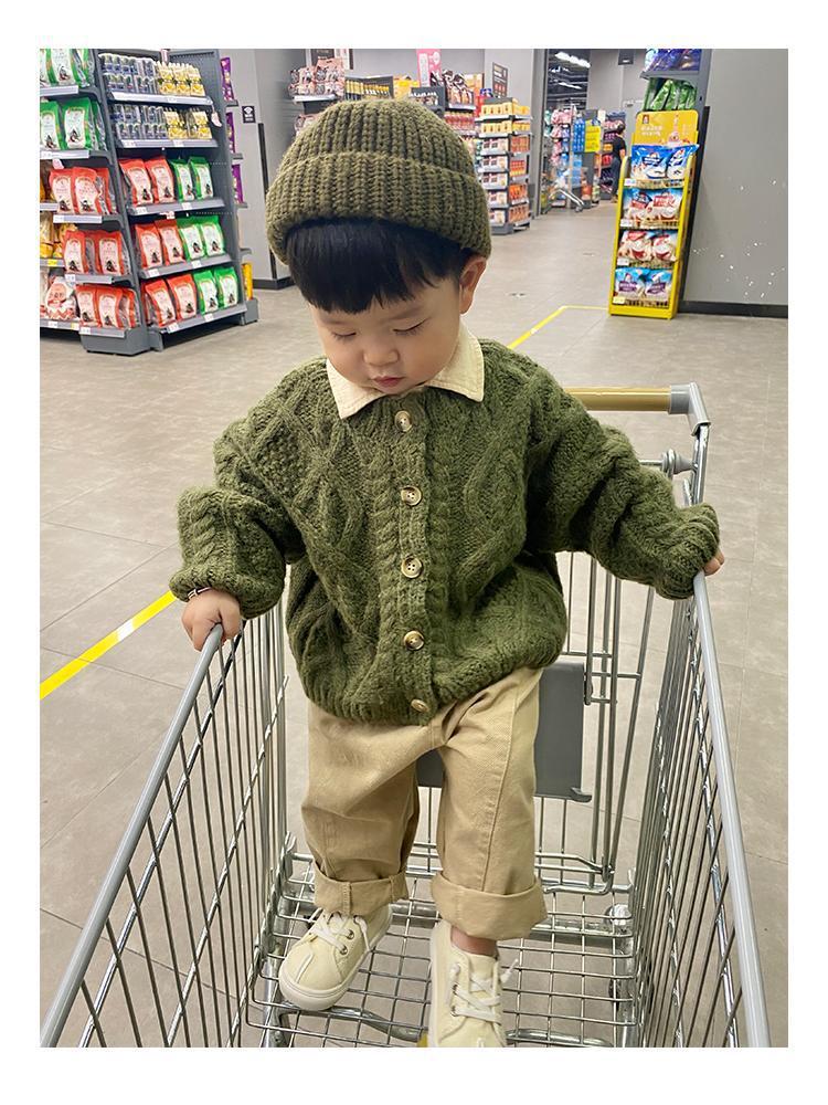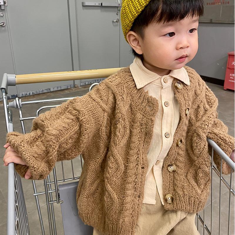 슈퍼 한국 스타일 라운드 넥 게으른 스타일 어린이 트위스트 스웨터 베이비 소년과 소녀 레트로 니트 스웨터 카디건 코트 봄과 가을스토어 가기