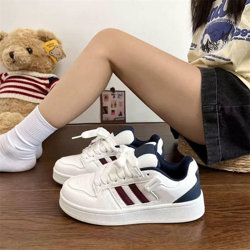 틈새 레트로 플랫폼 빵 신발 여성의 2024 봄과 가을 학생을위한 새로운 올 매치 화이트 신발 캐주얼 스포츠 보드 신발스토어 가기