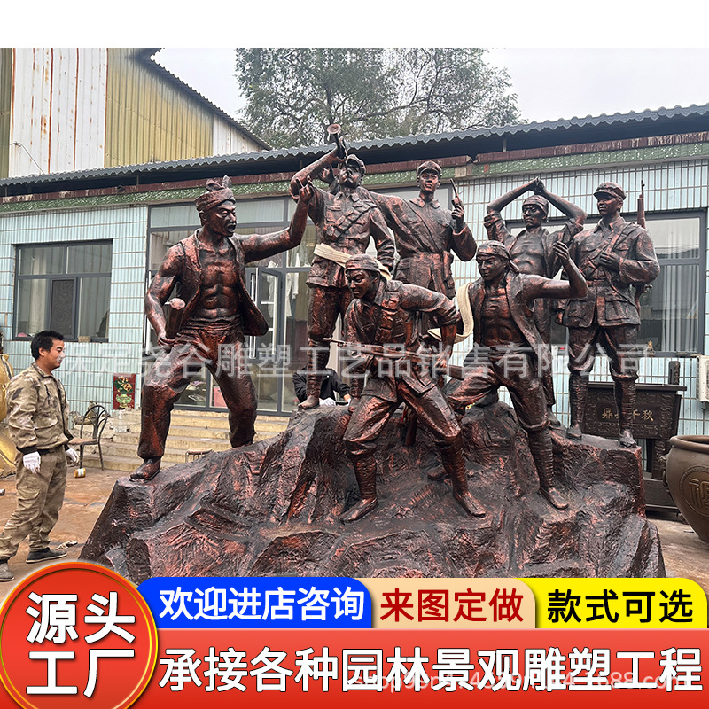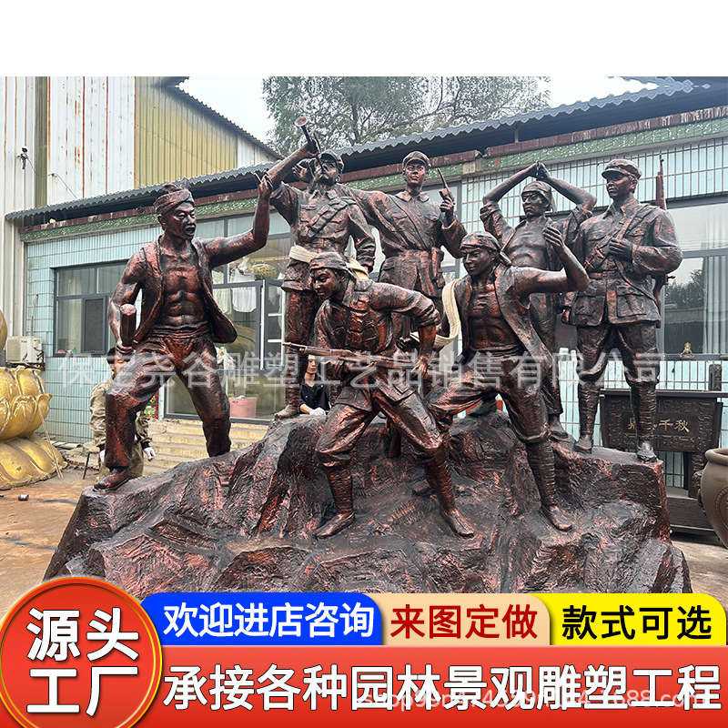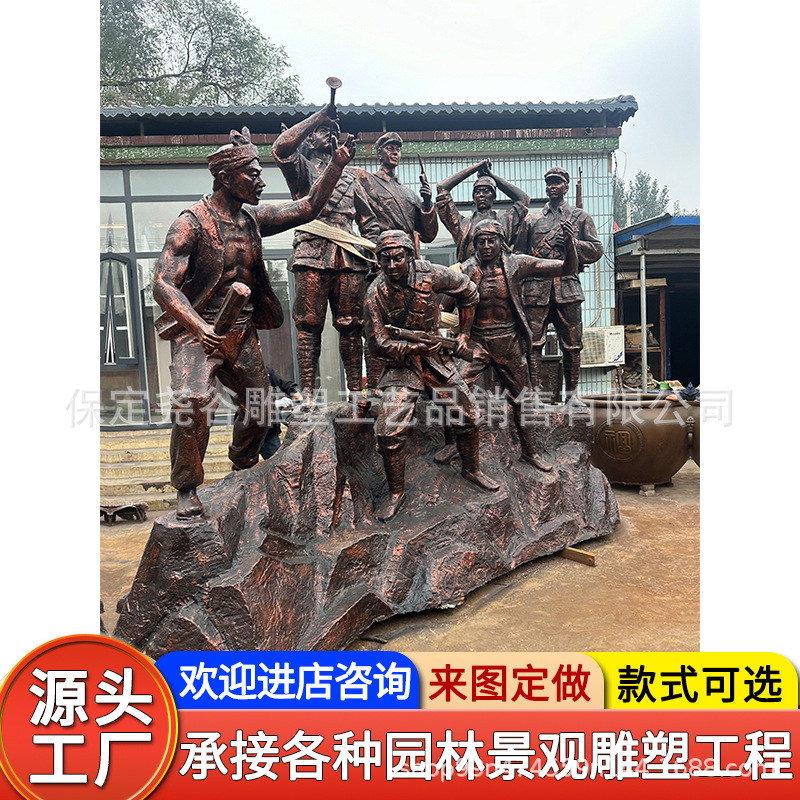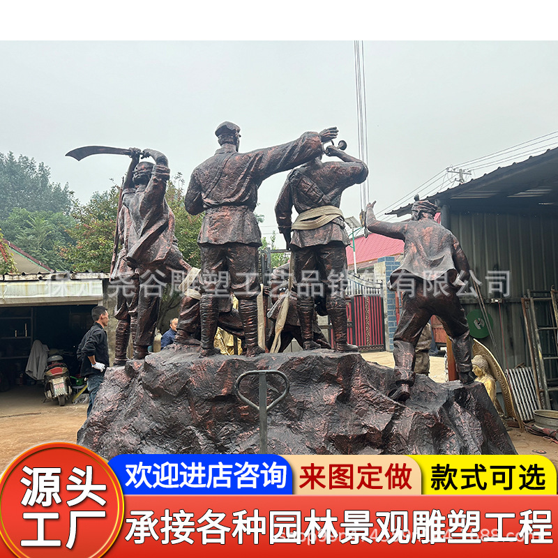 캐스트 구리 그림 조각 대형 야외 혁명 붉은 기지 기념관 테마 그룹 조각 주철 모방 구리 붉은 군대 동상
