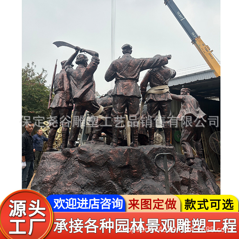 캐스트 구리 그림 조각 대형 야외 혁명 붉은 기지 기념관 테마 그룹 조각 주철 모방 구리 붉은 군대 동상스토어 가기