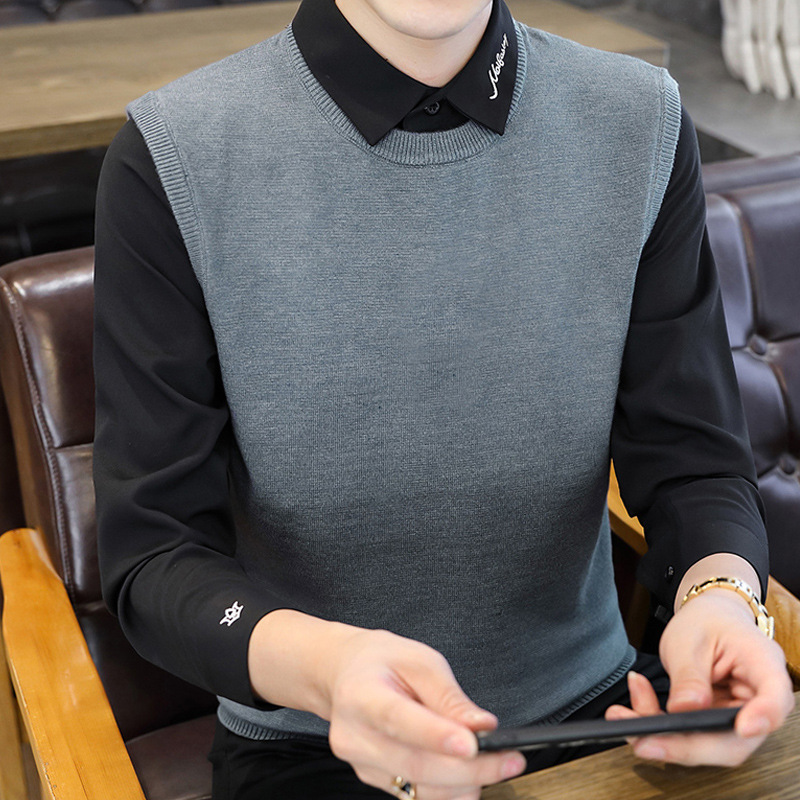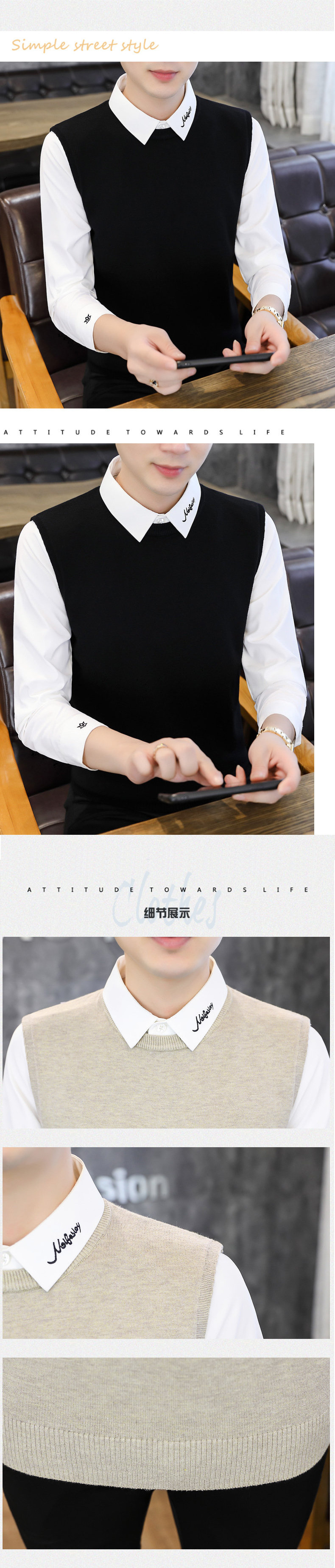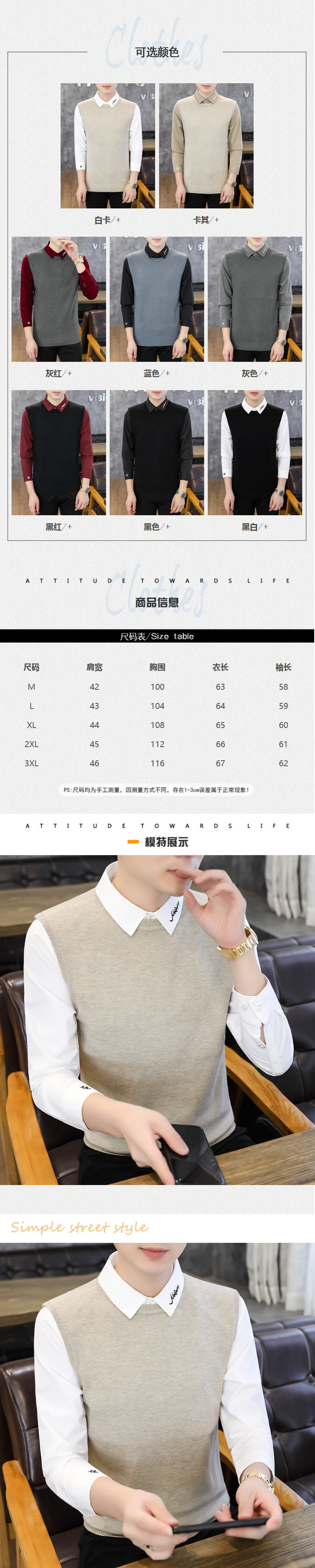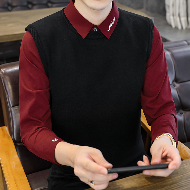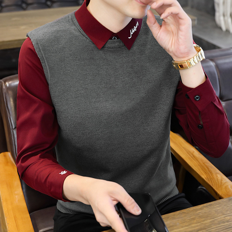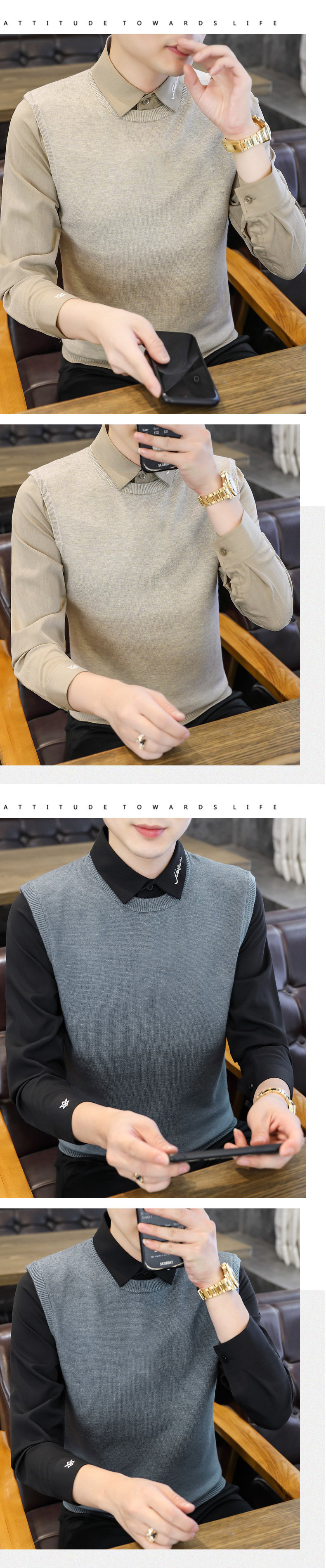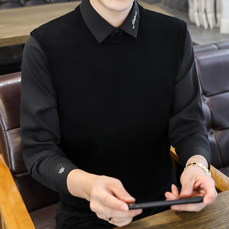 0 도 새로운 가짜 투피스 스웨터 남성용 셔츠 칼라 니트 베이스 셔츠 남성 문서.스토어 가기