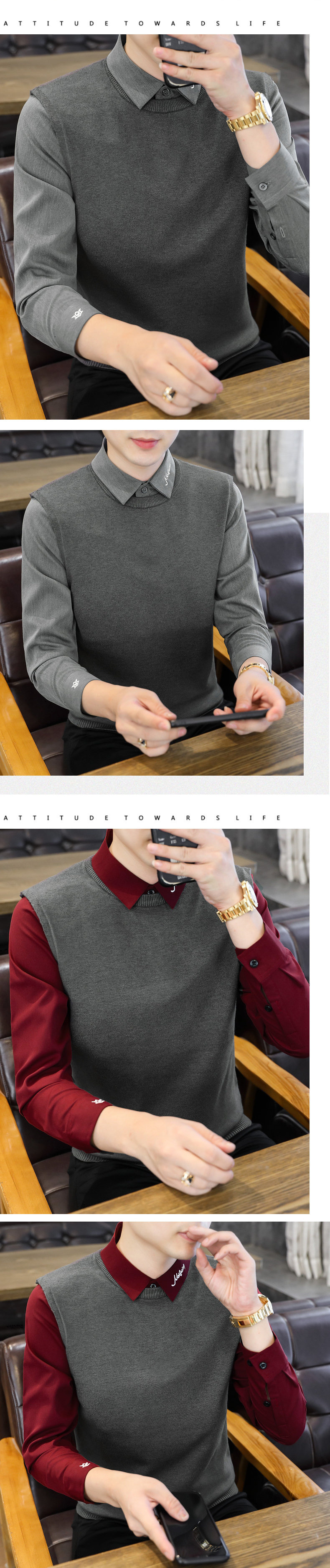 0 도 새로운 가짜 투피스 스웨터 남성용 셔츠 칼라 니트 베이스 셔츠 남성 문서.