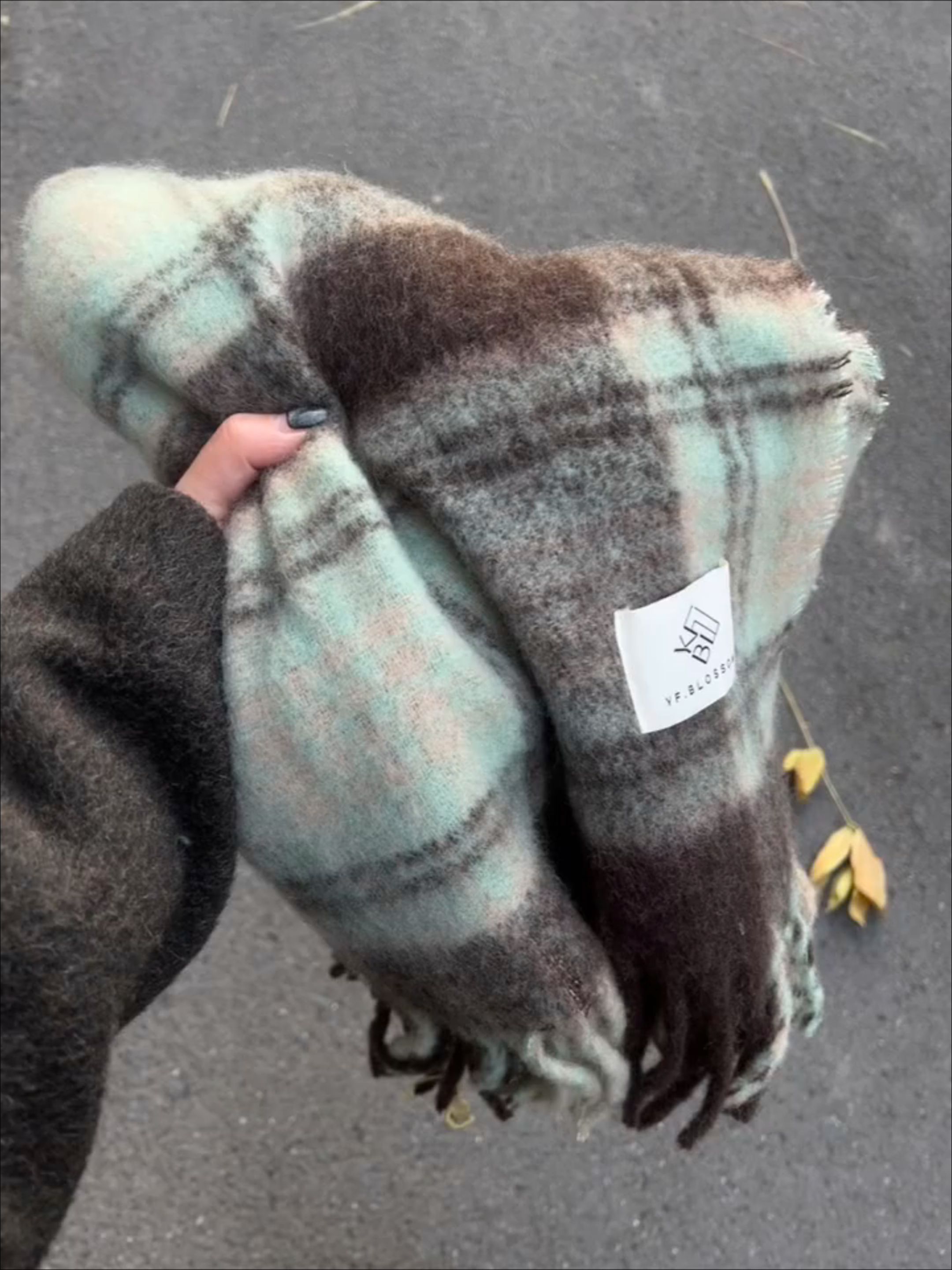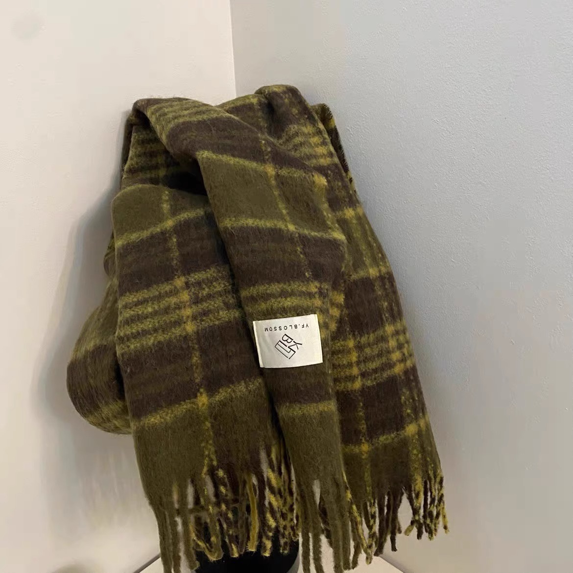 민트 그린 스카프 가을과 겨울 여성의 봉제 줄무늬 따뜻한 한랭 목도리 이중 사용 생일 선물 2024 새로운스토어 가기