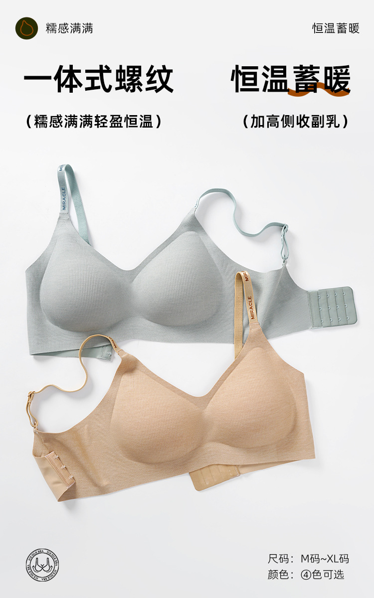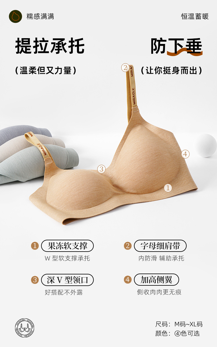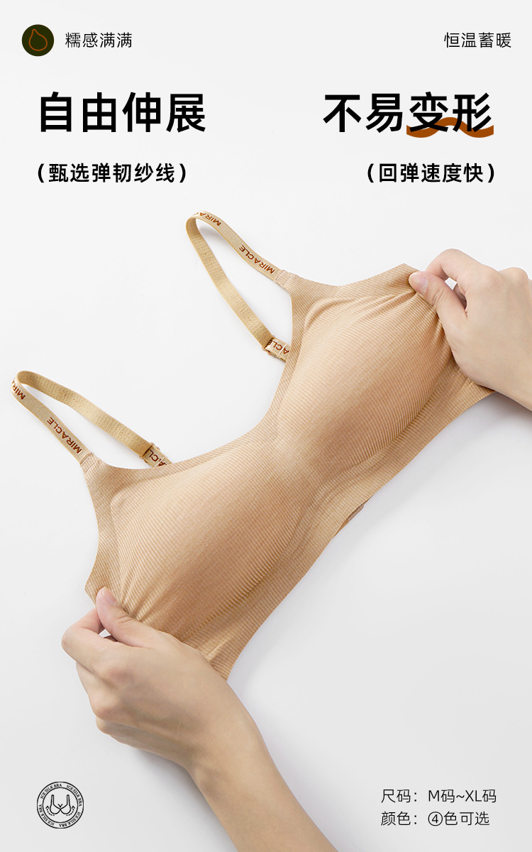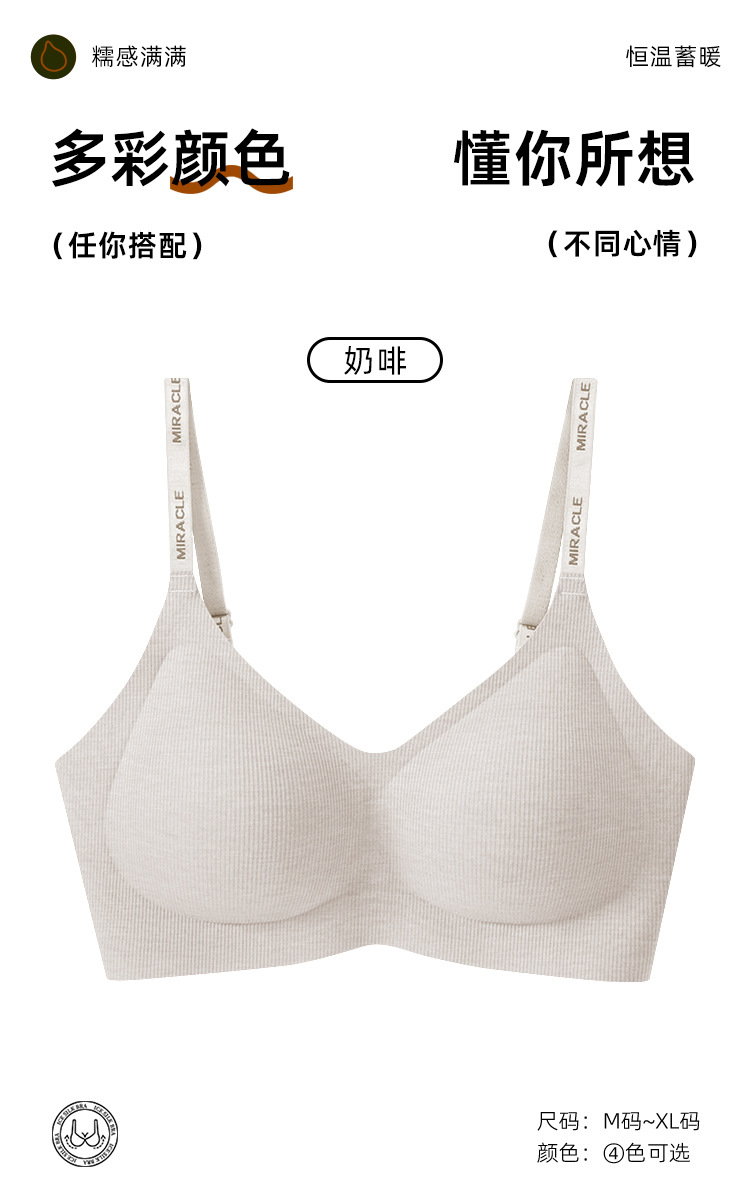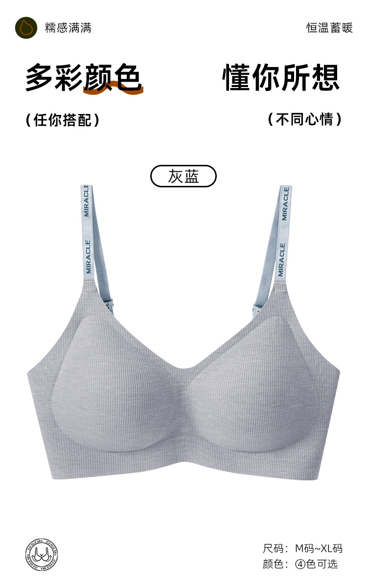 가을 겨울 레터링 숄더 스트랩 보온 브라 반고정컵 아크릴 무와이어 소프트 서포트 여성 속옷 뷰티백 푸쉬업