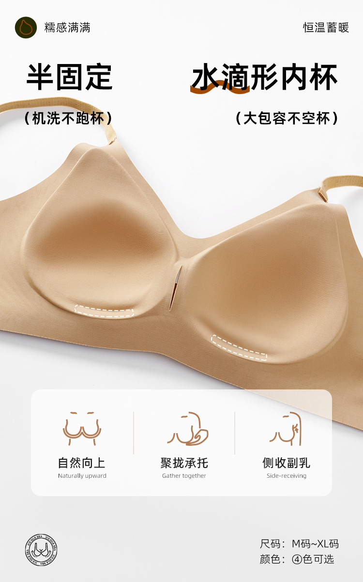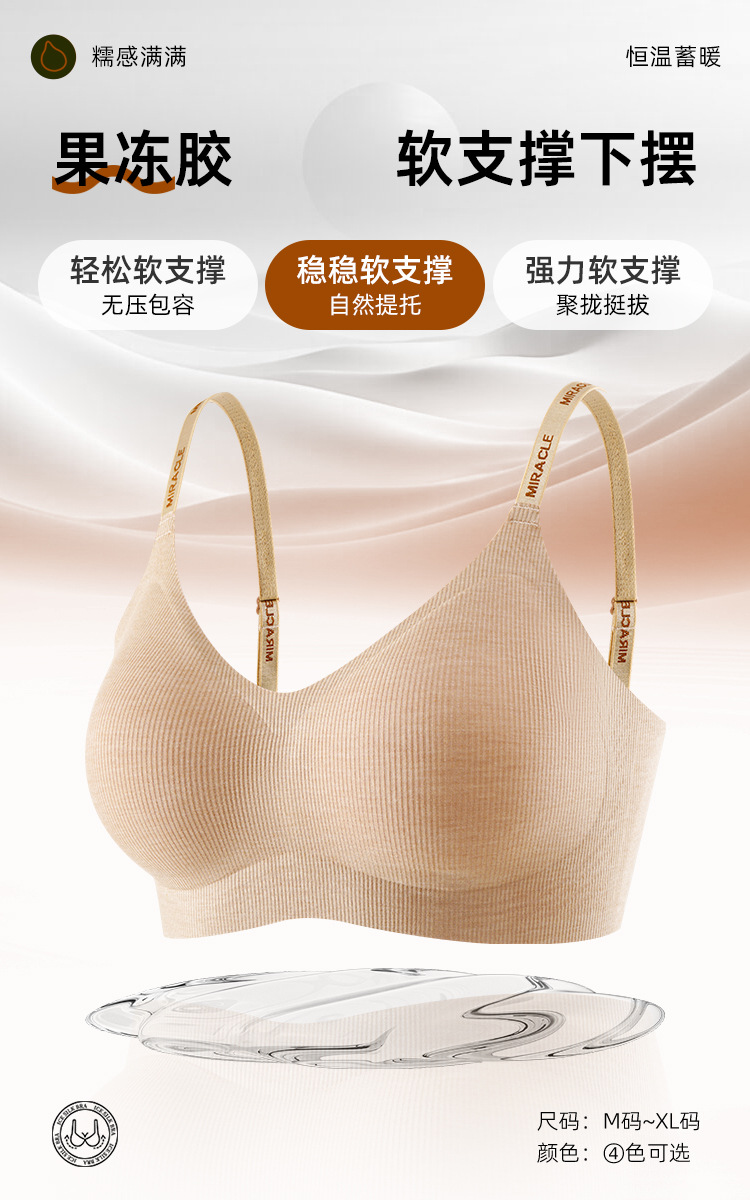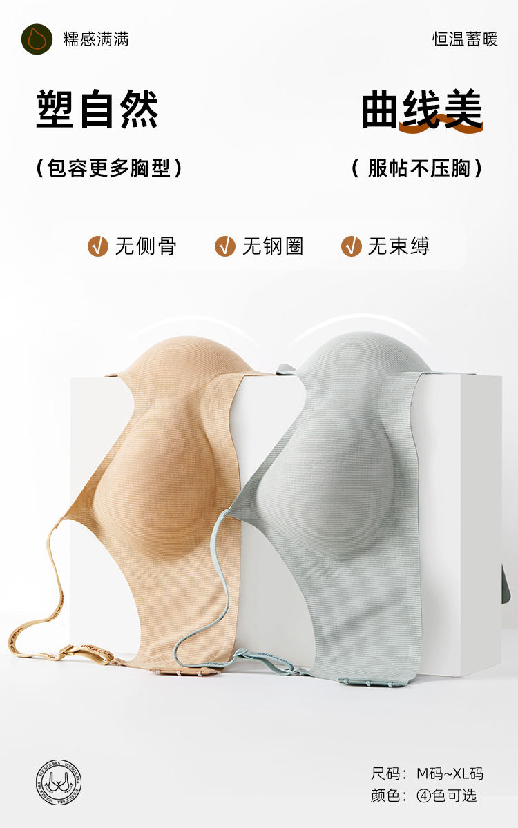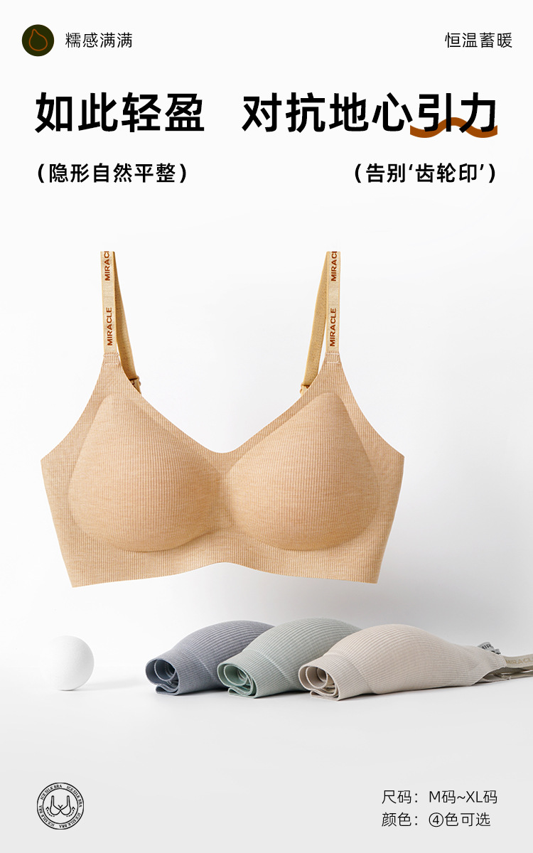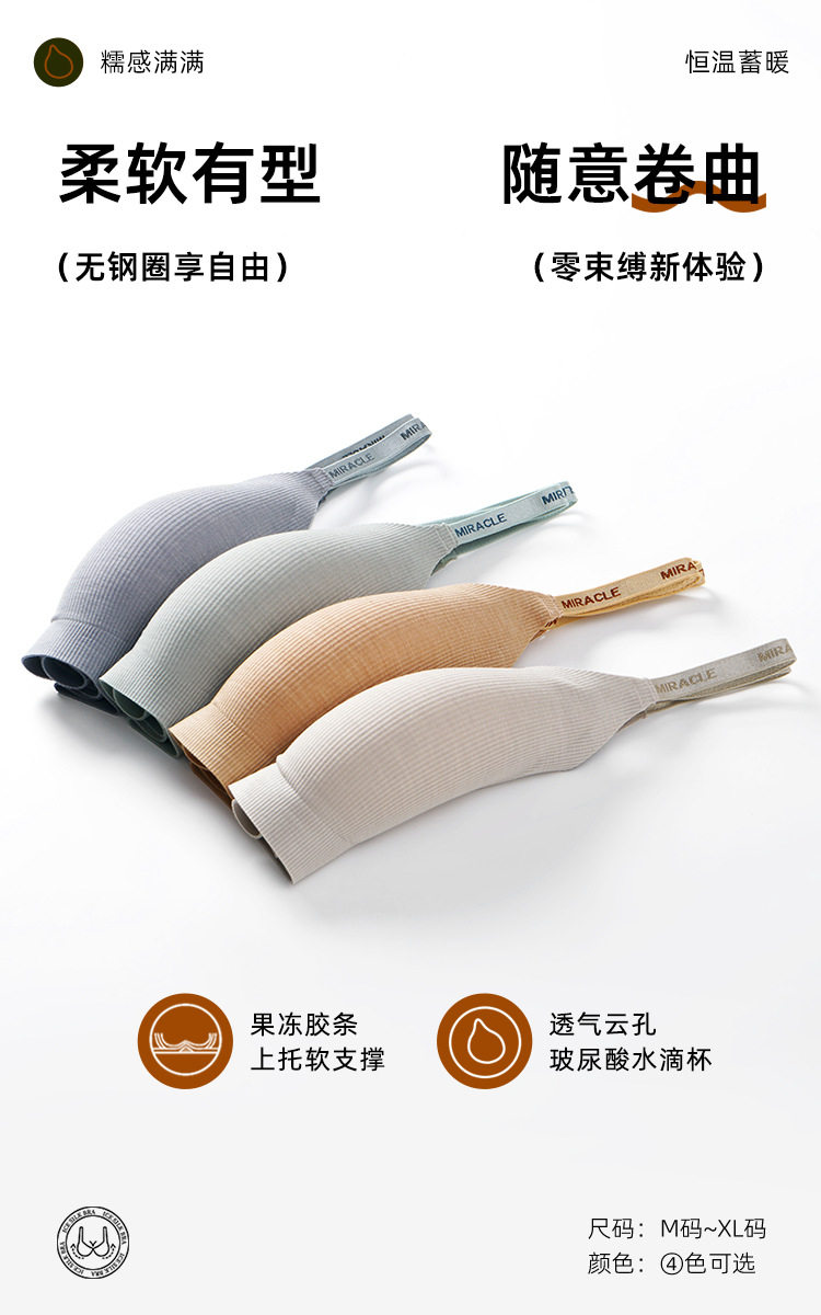 가을 겨울 레터링 숄더 스트랩 보온 브라 반고정컵 아크릴 무와이어 소프트 서포트 여성 속옷 뷰티백 푸쉬업