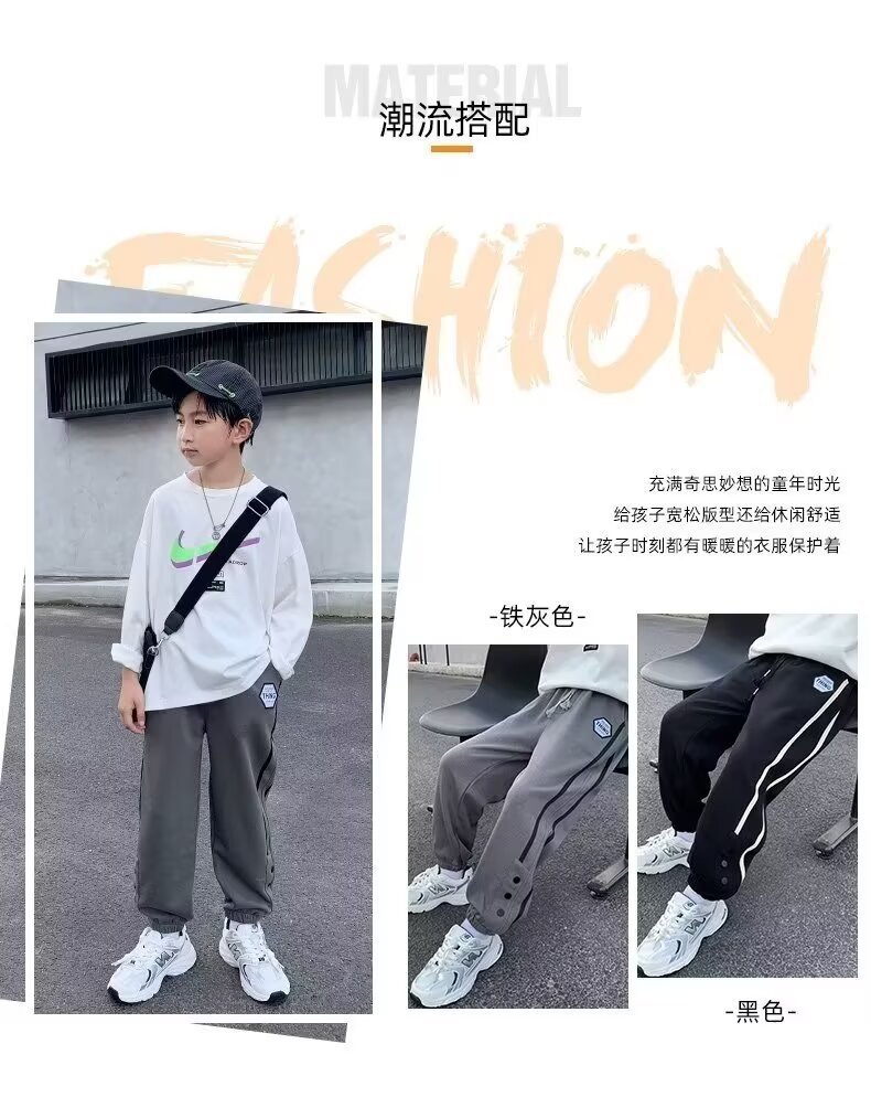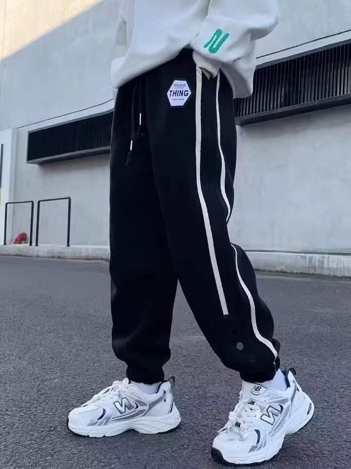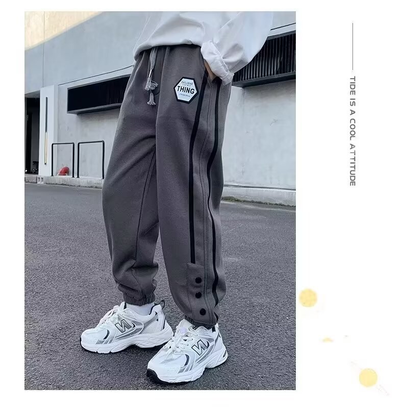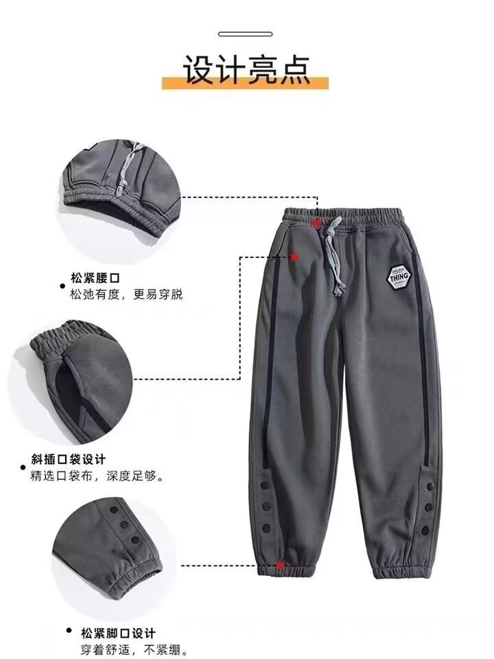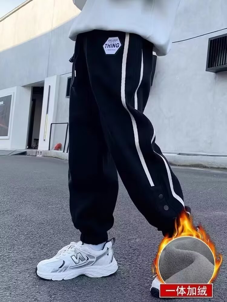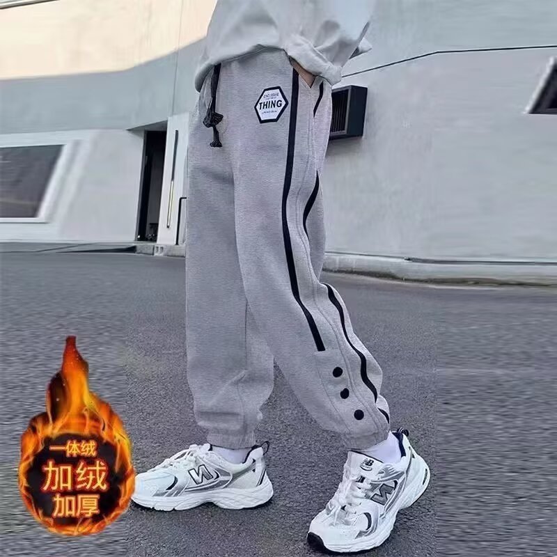 남학생 기모 바지 어린이 느슨한 운동복 2024 년 가을과 겨울 새로운 원피스 양털 스포츠 바지스토어 가기