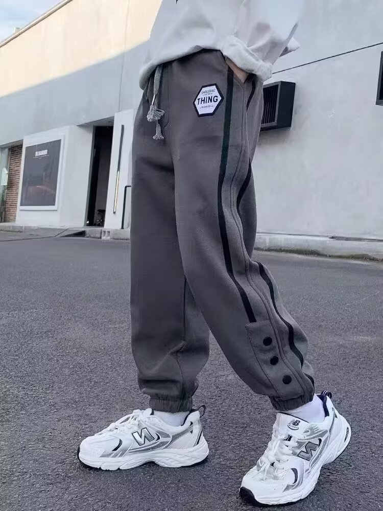 남학생 기모 바지 어린이 느슨한 운동복 2024 년 가을과 겨울 새로운 원피스 양털 스포츠 바지