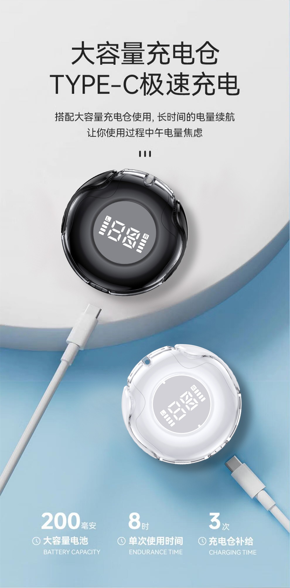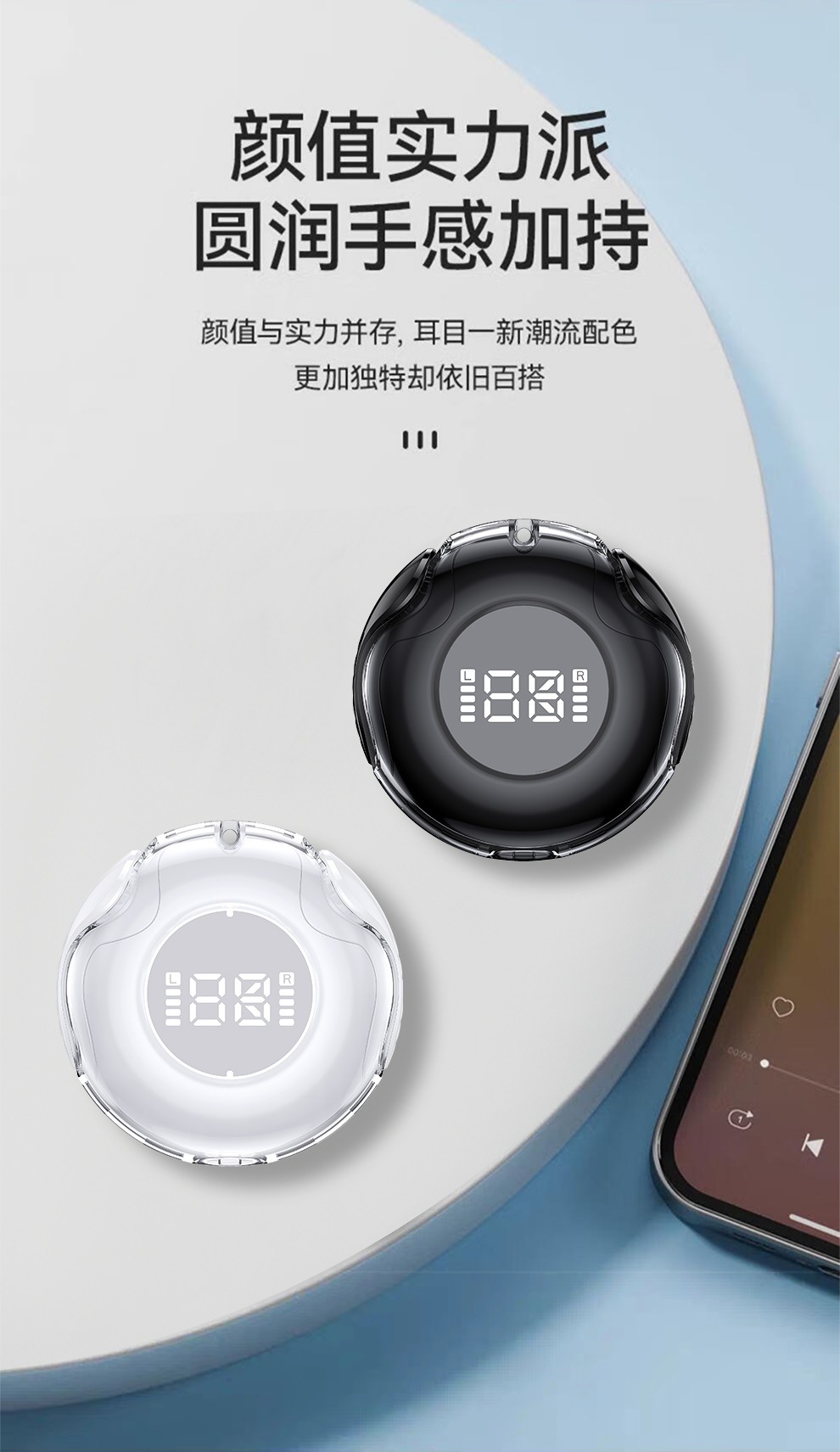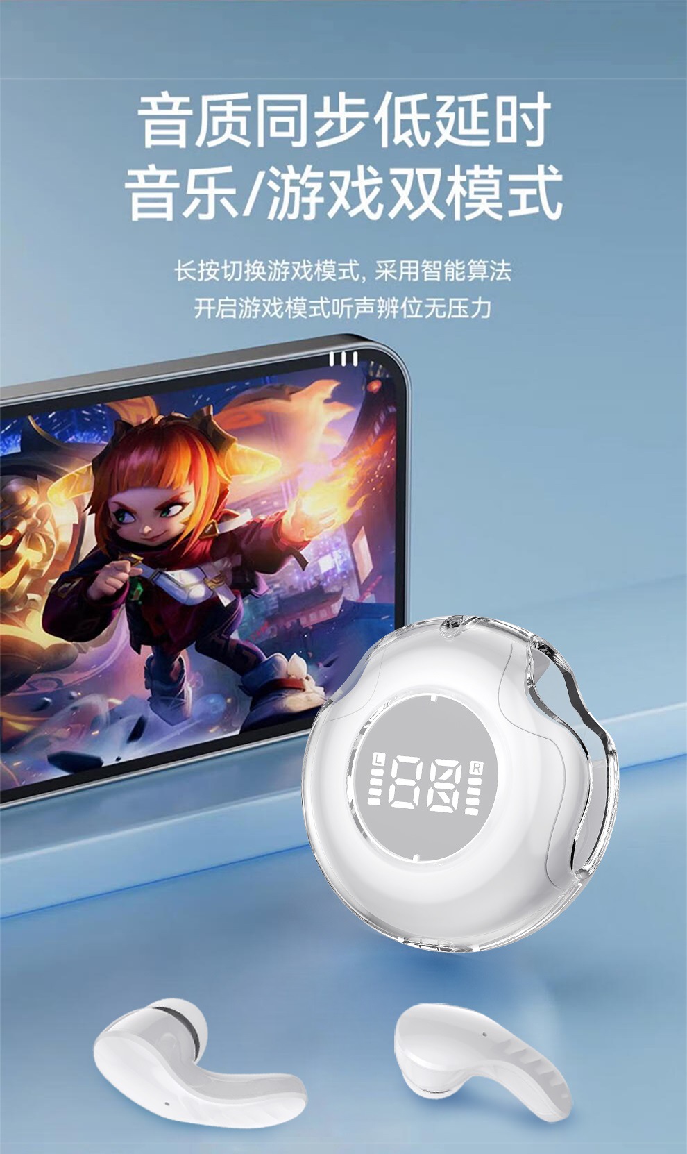 진정한 무선 블루투스 헤드셋 디지털 디스플레이 헤드셋 호흡 빛 패션 바이노럴 스테레오 스포츠 헤드셋 지문 터치