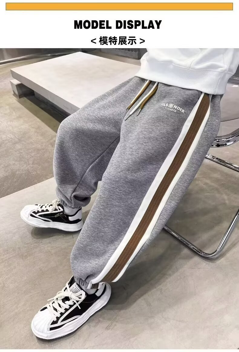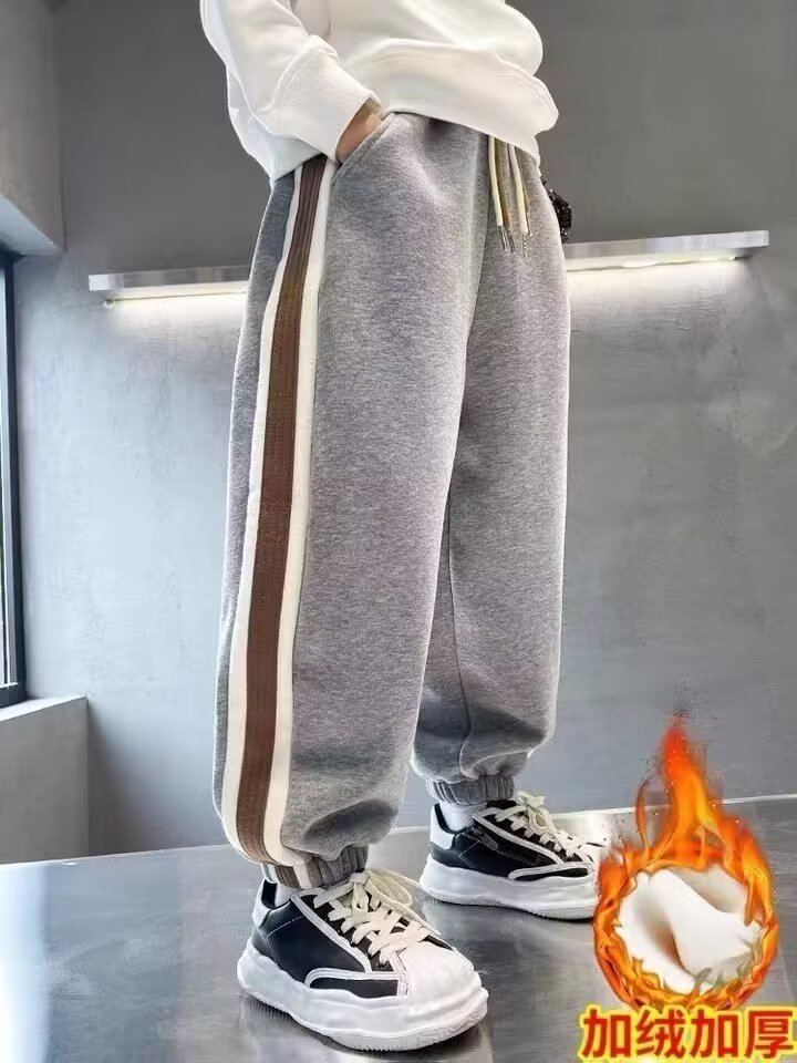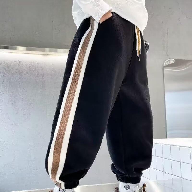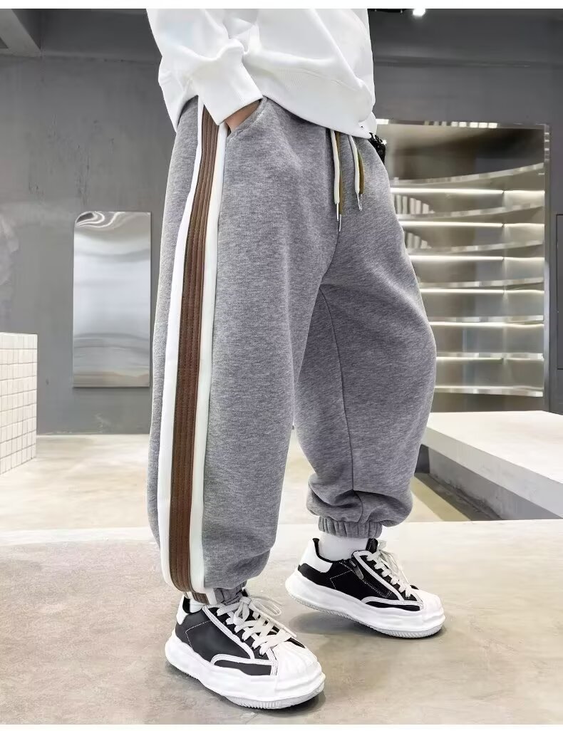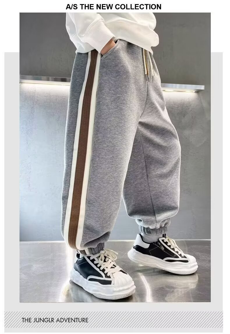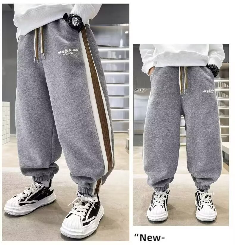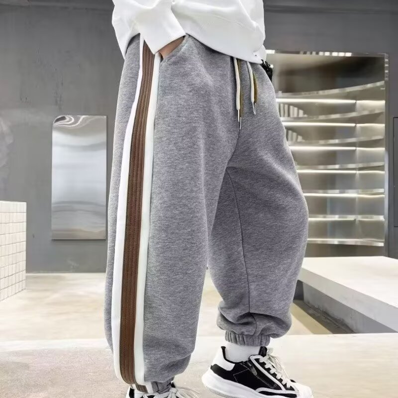 소년의 봄과 가을 바지 2024 새로운 봄과 가을 어린이 스포츠 소년 중 큰 어린이 기모 봄 바지 트렌디