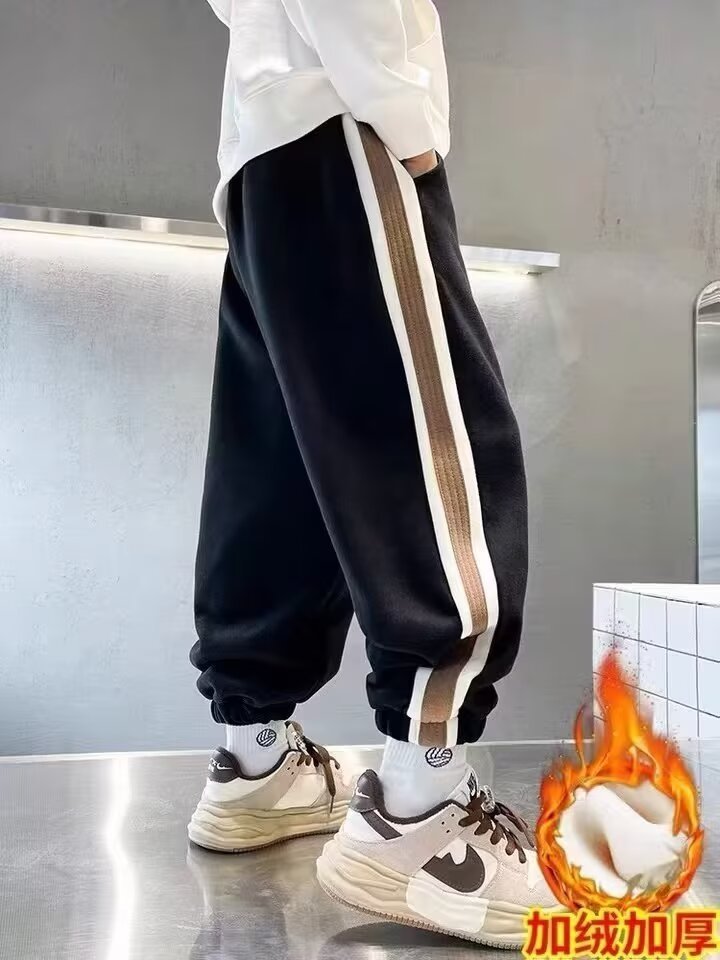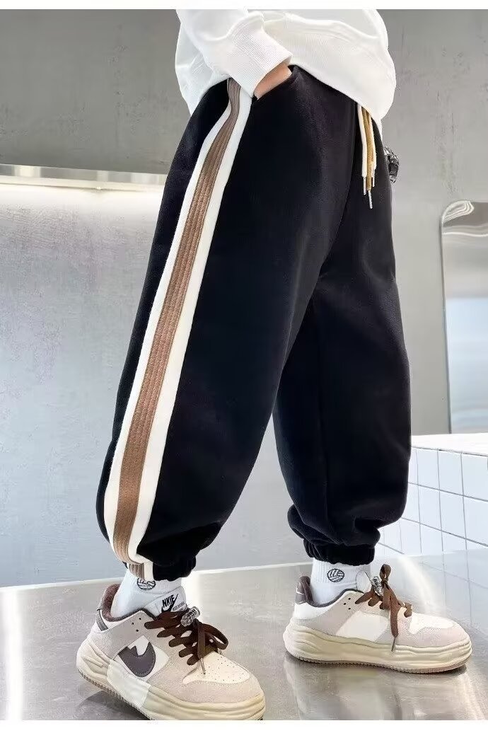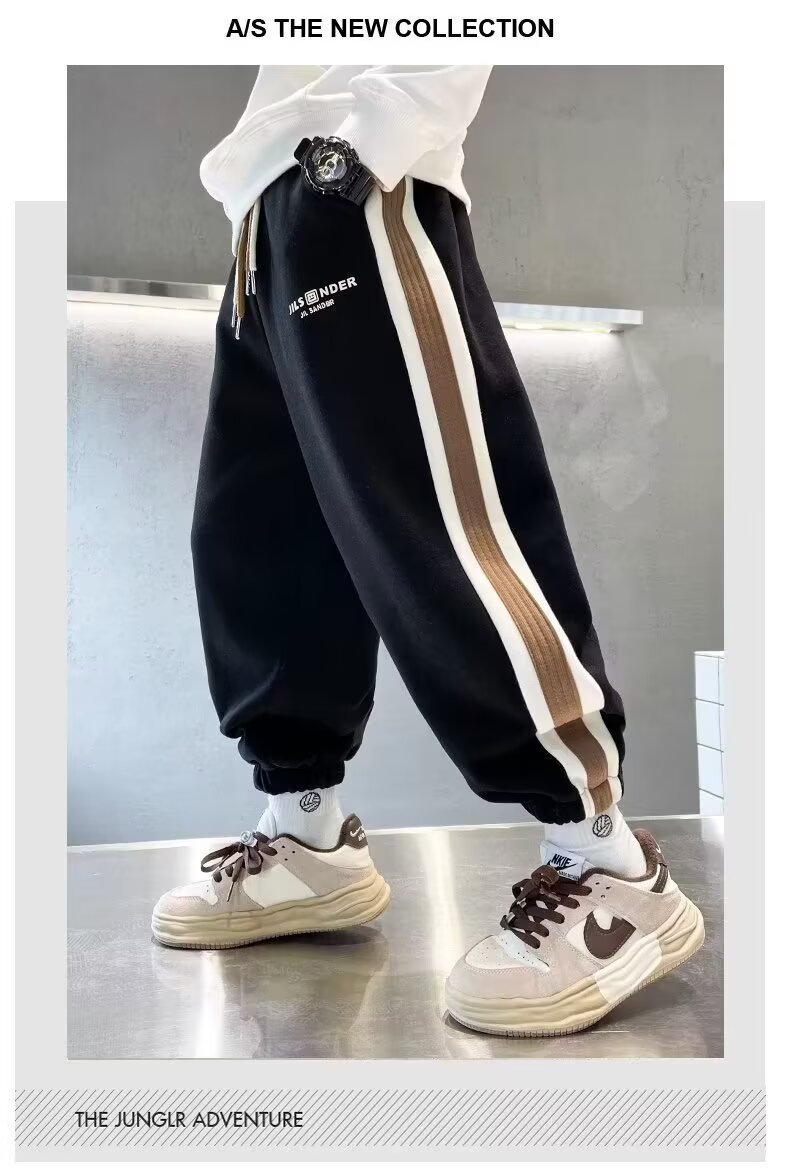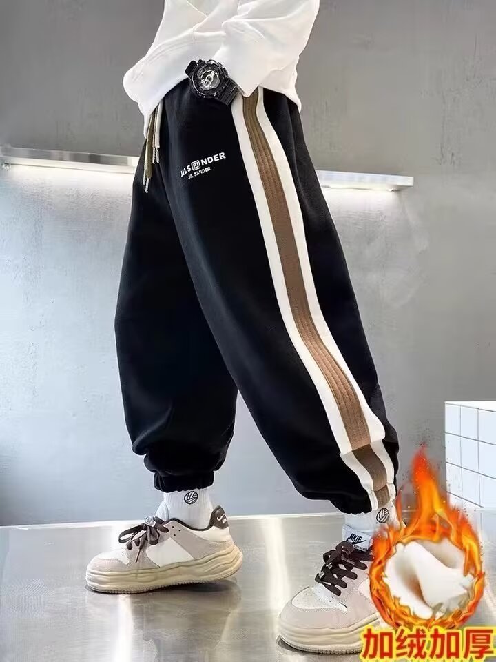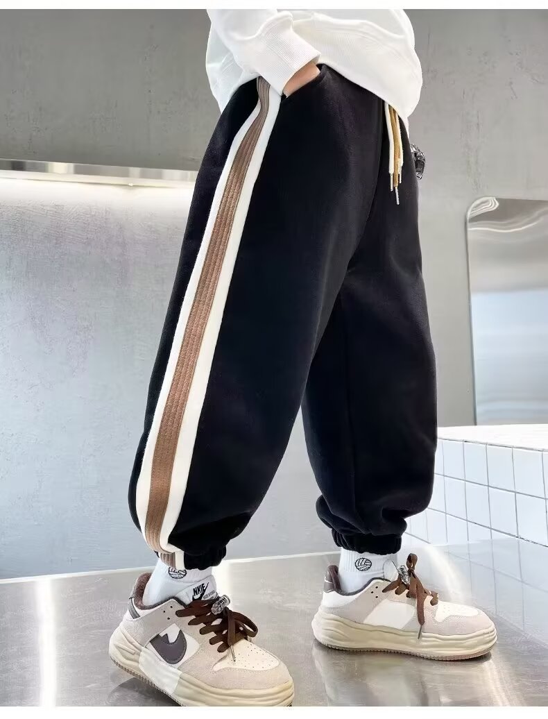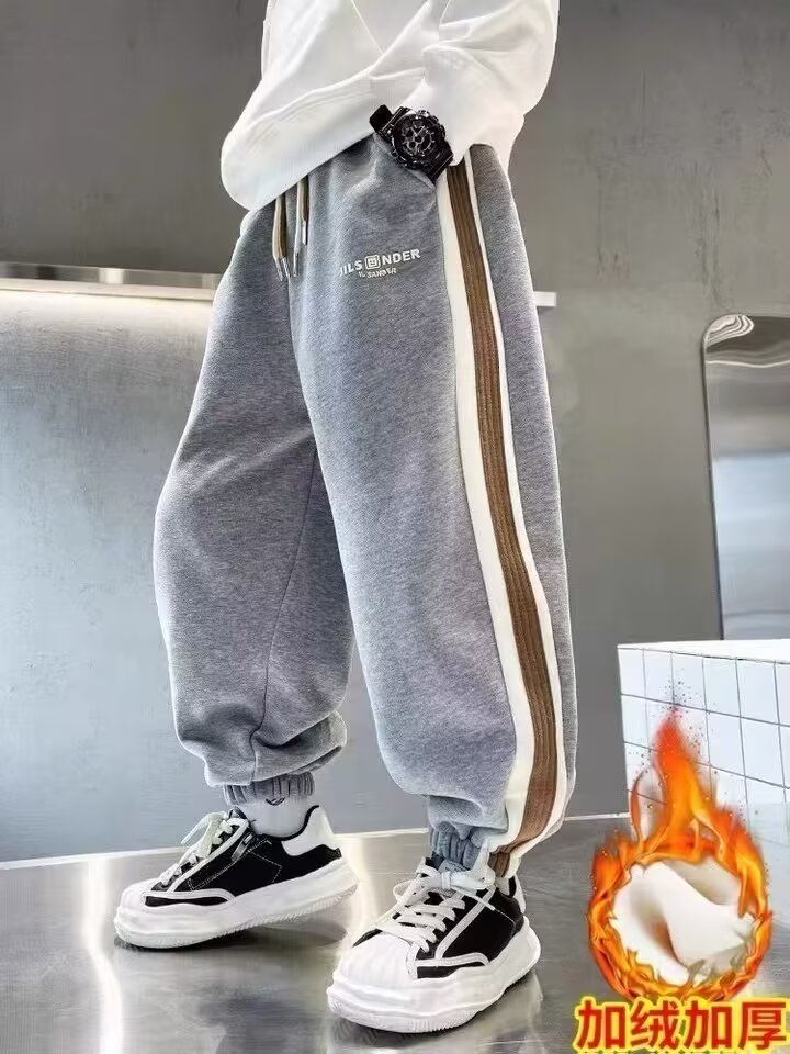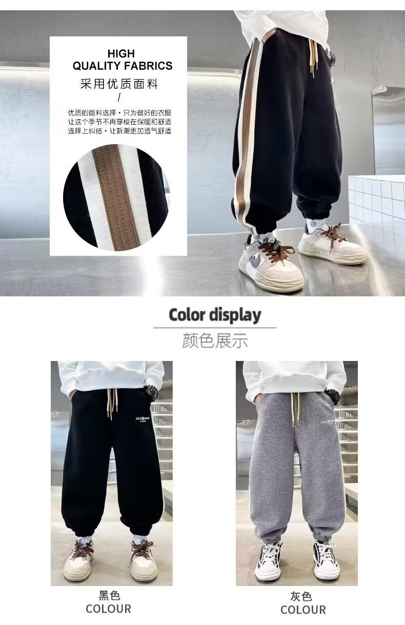 소년의 봄과 가을 바지 2024 새로운 봄과 가을 어린이 스포츠 소년 중 큰 어린이 기모 봄 바지 트렌디