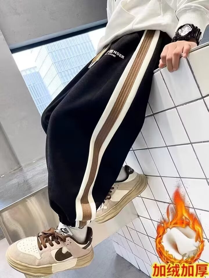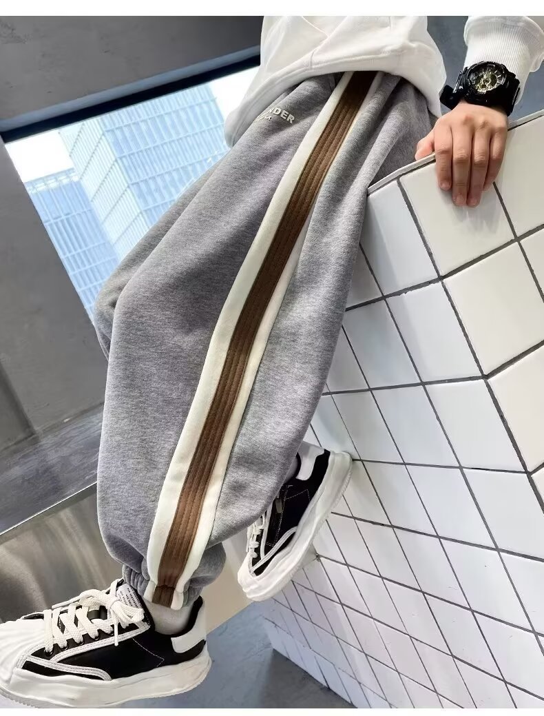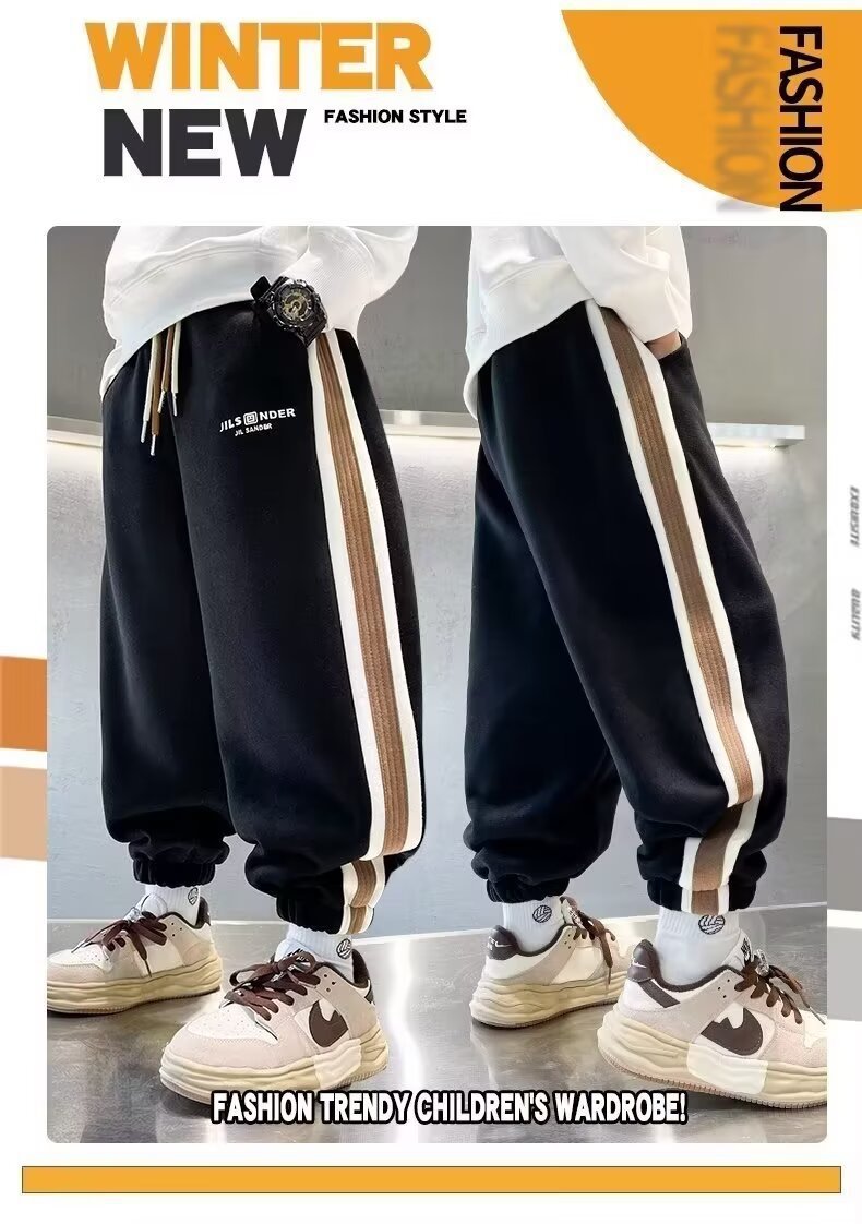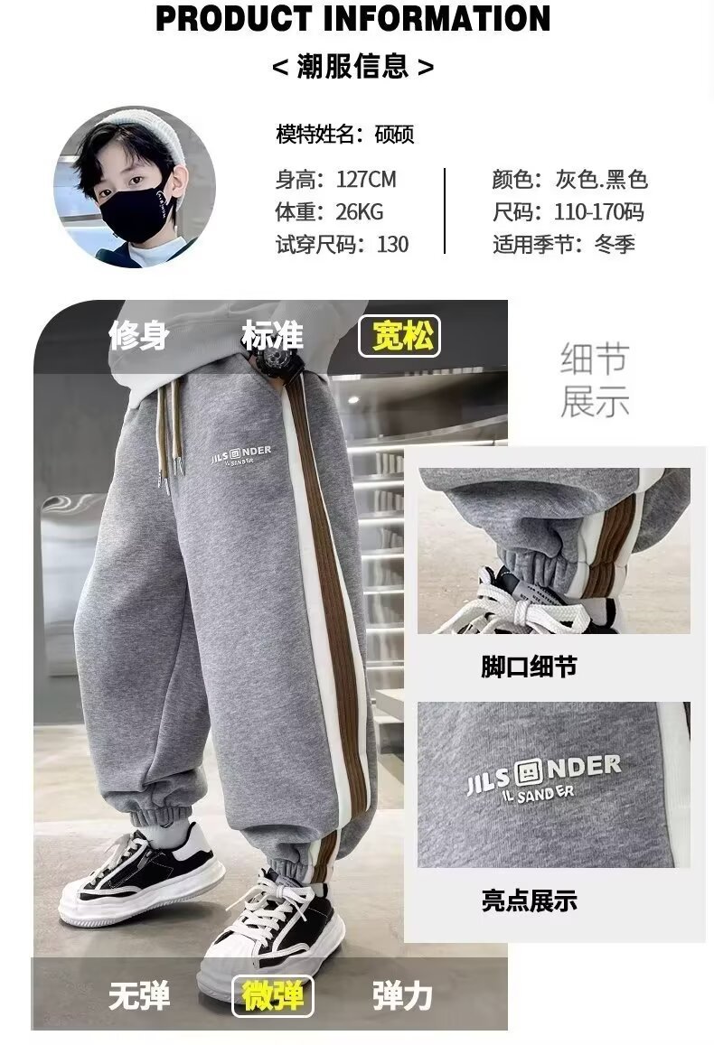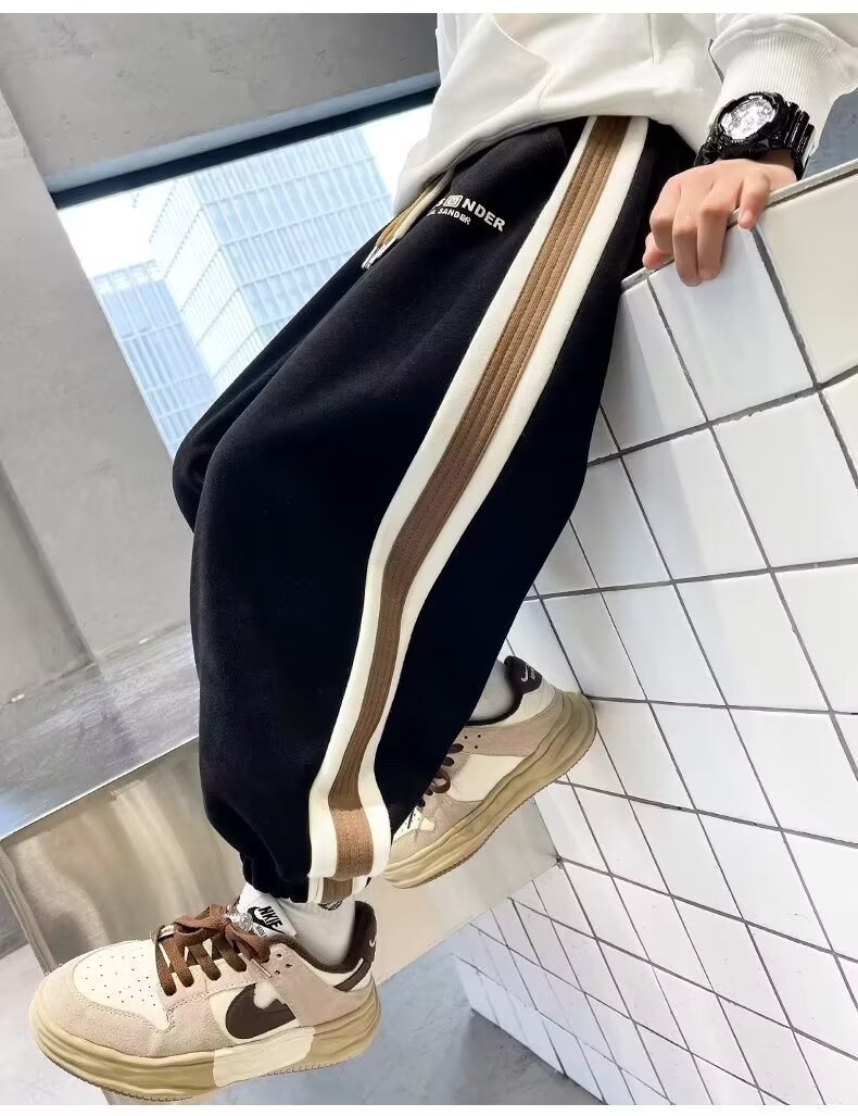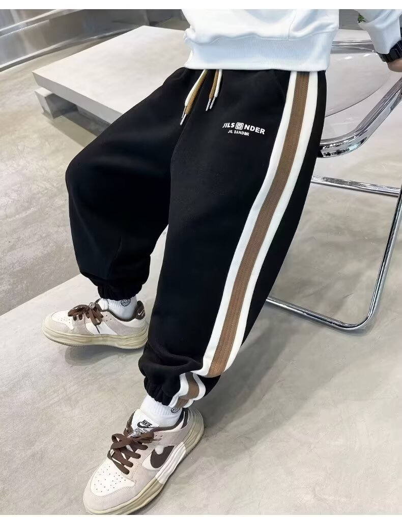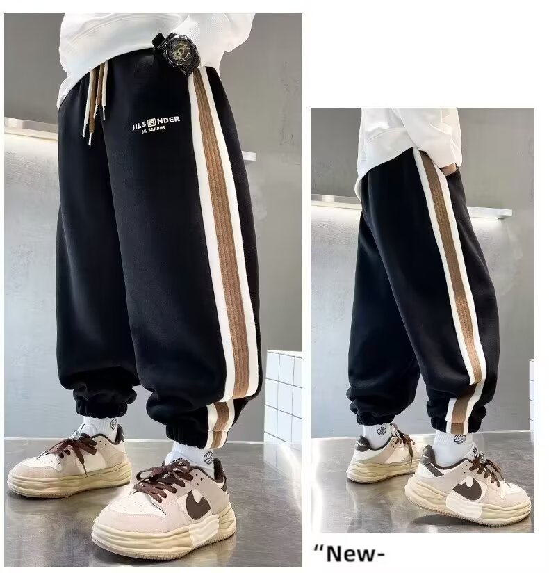 소년의 봄과 가을 바지 2024 새로운 봄과 가을 어린이 스포츠 소년 중 큰 어린이 기모 봄 바지 트렌디