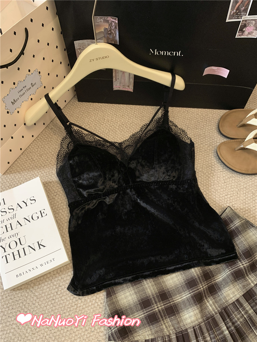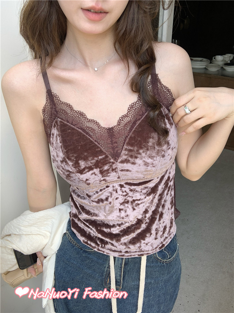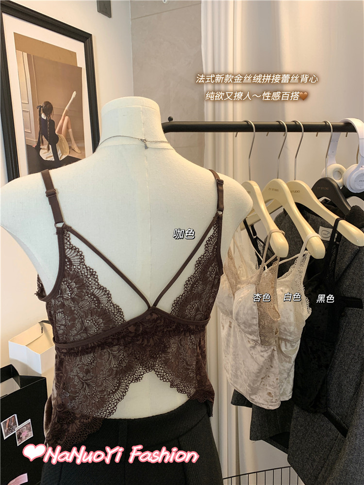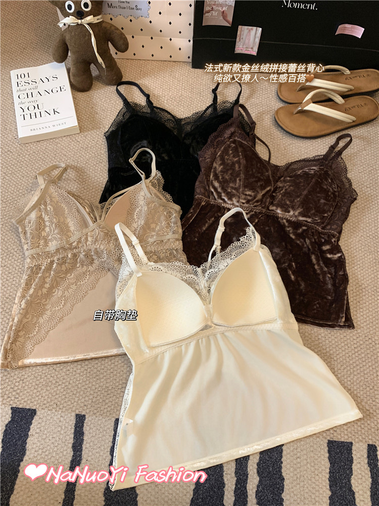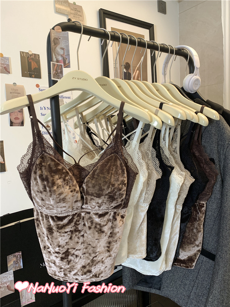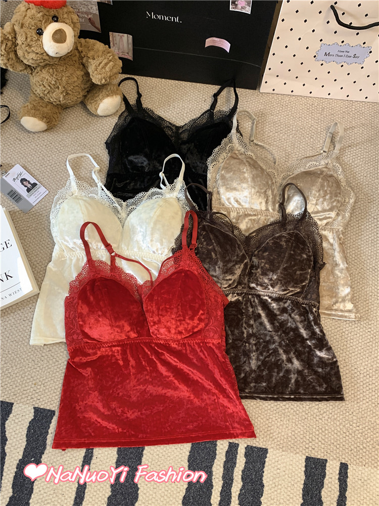 이른 겨울 새 벨벳 아름다운 뒷면 카미솔 레이스 섹시한 내부 입고 외장 입고 가슴 패드 슬리밍베이스로 원피스스토어 가기