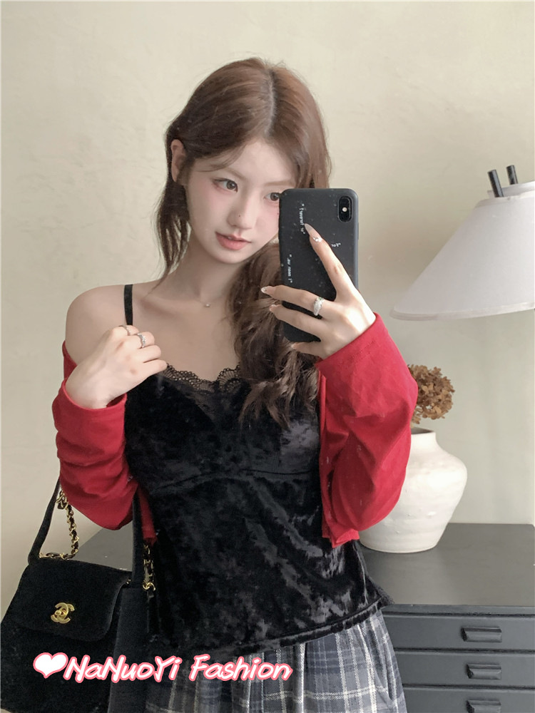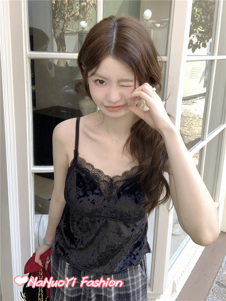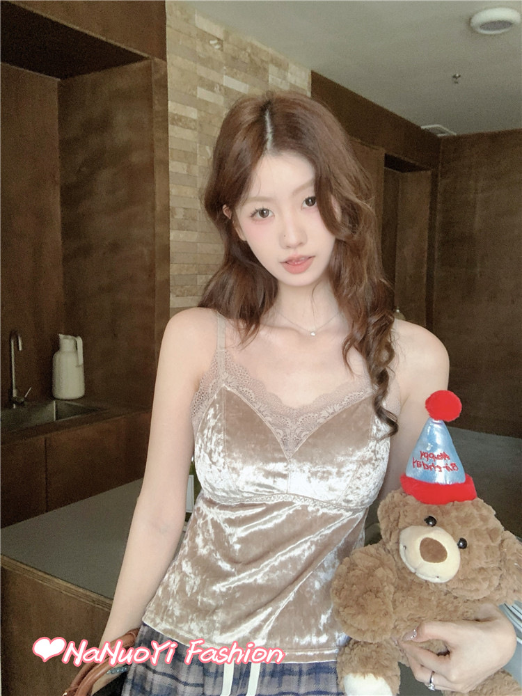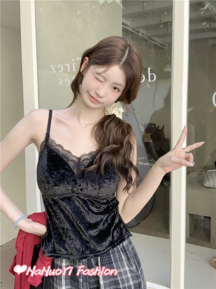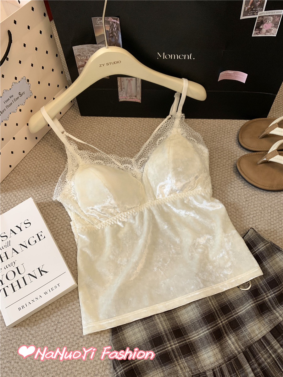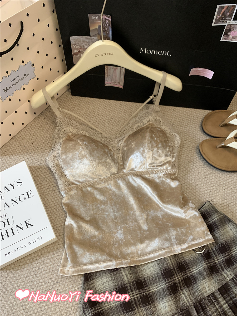 이른 겨울 새 벨벳 아름다운 뒷면 카미솔 레이스 섹시한 내부 입고 외장 입고 가슴 패드 슬리밍베이스로 원피스스토어 가기