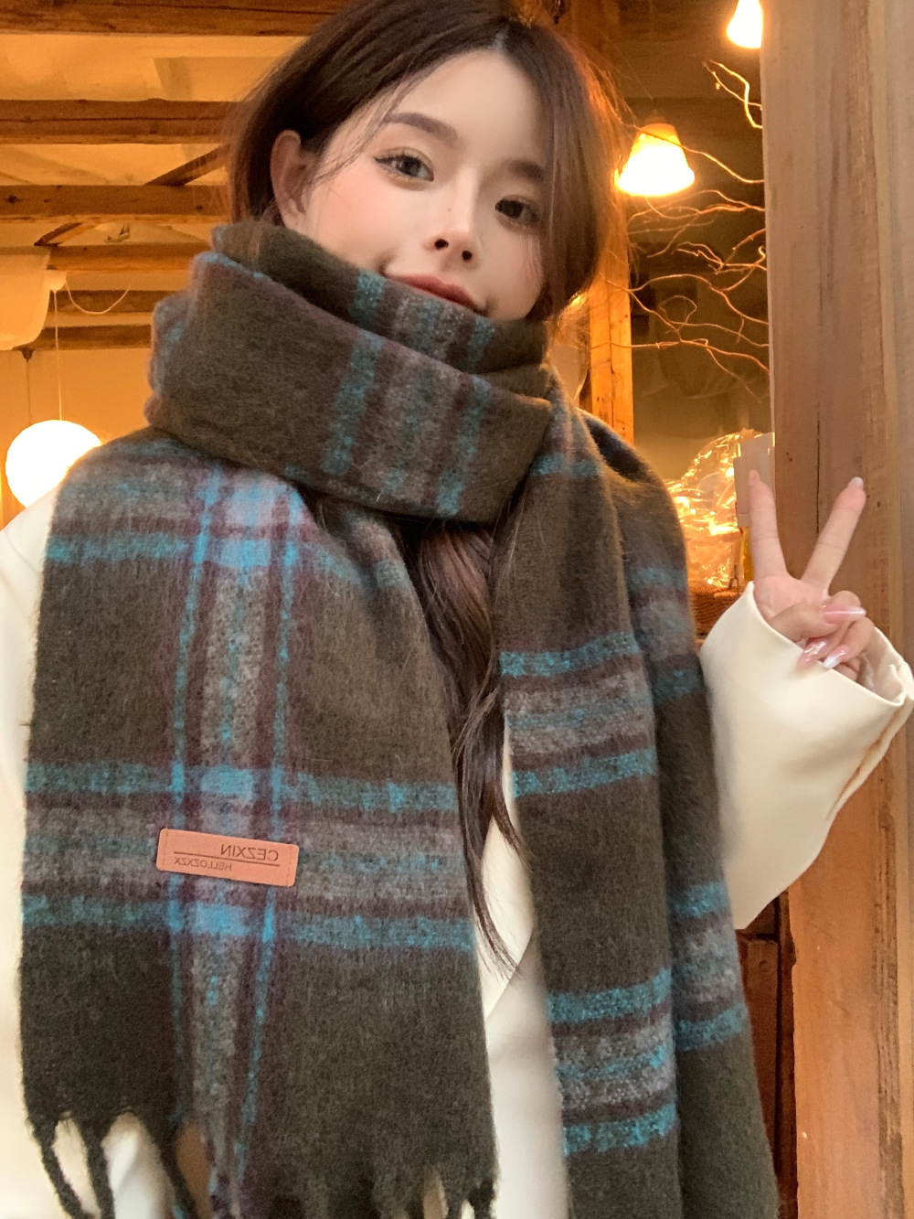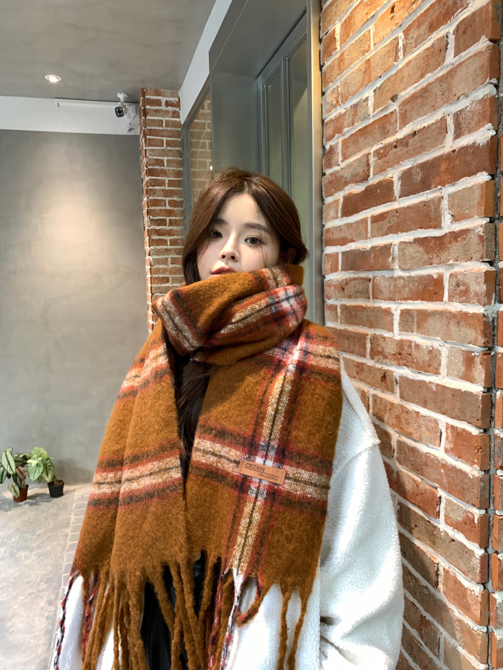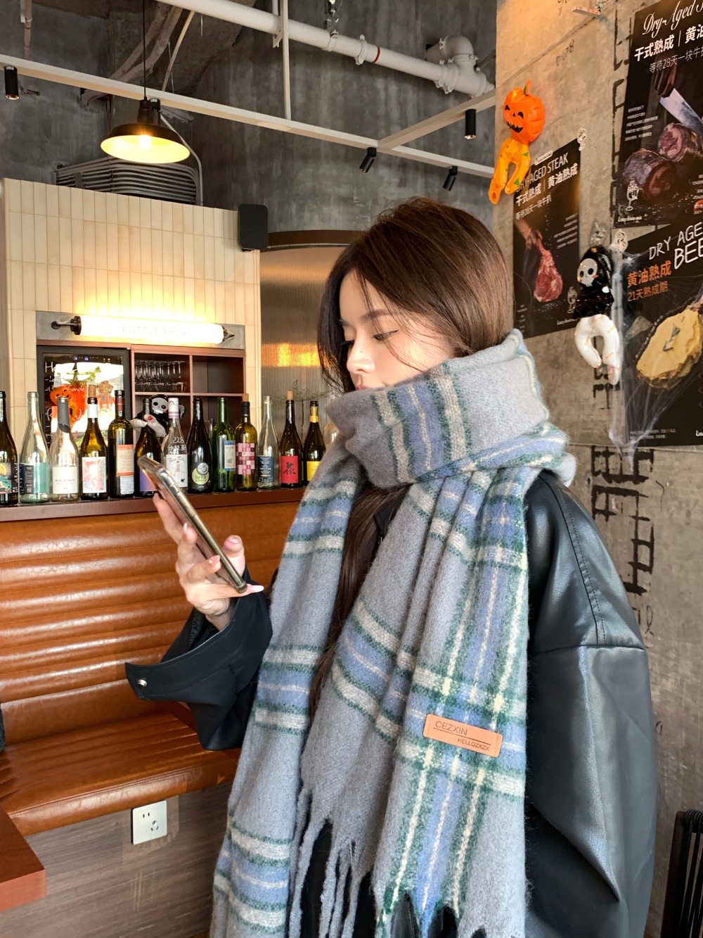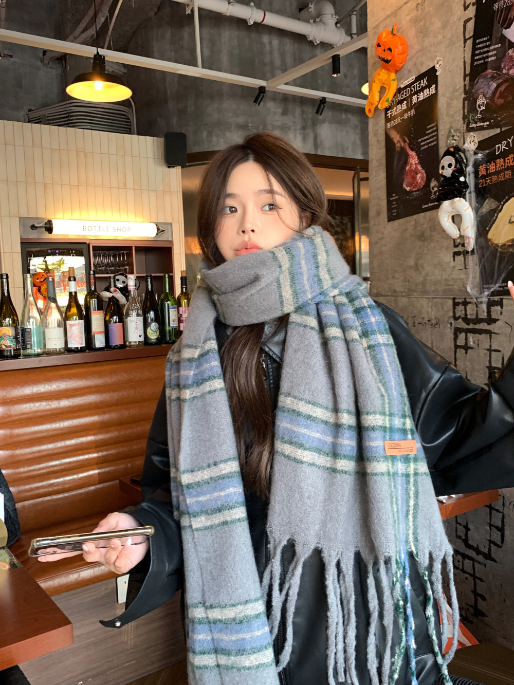 가을과 겨울의 여자 쿨 스카프 따뜻한 두꺼운 니트 스카프 커플의 올매치 한국식 격자 무늬 모헤어 목도리스토어 가기