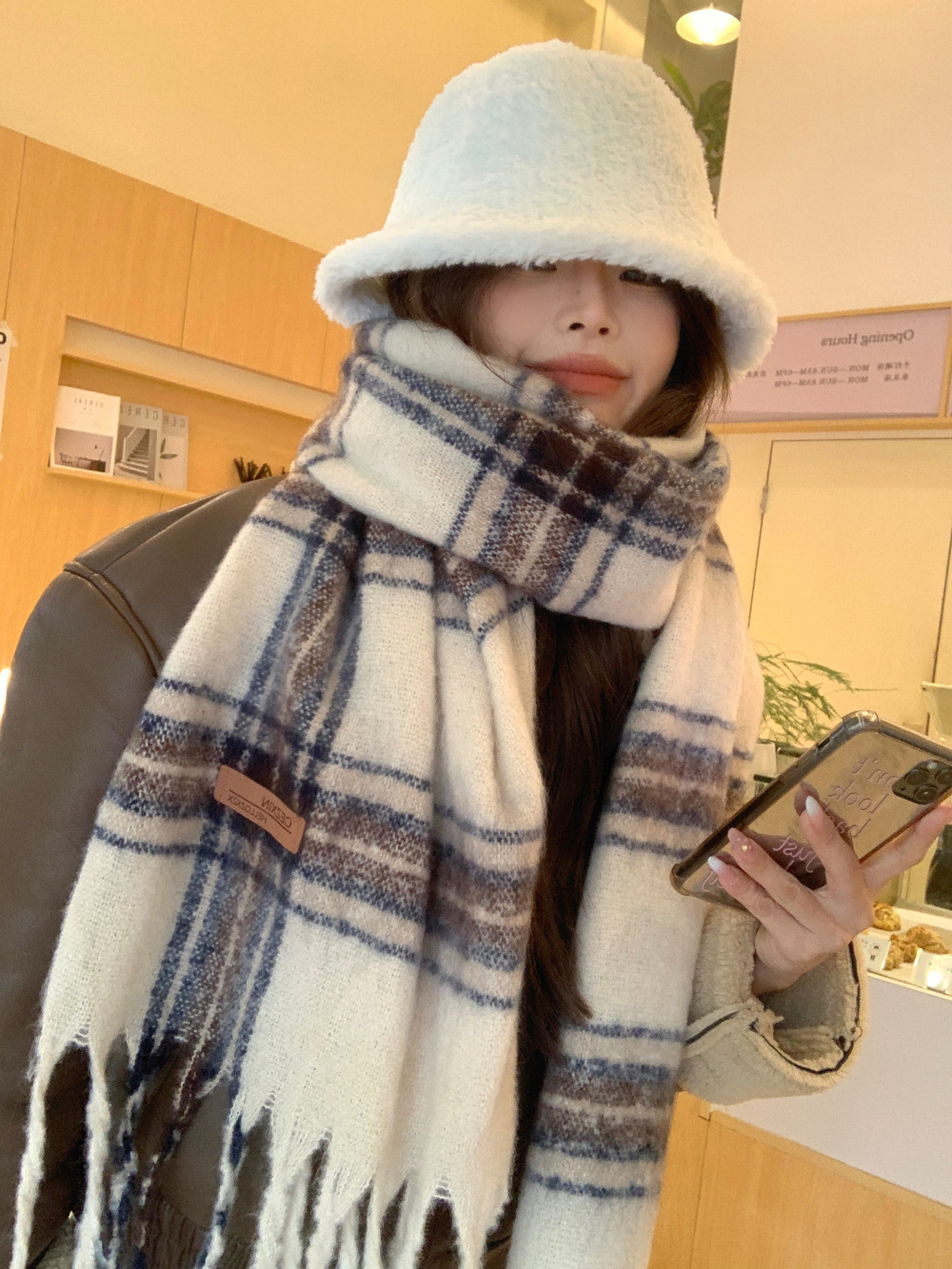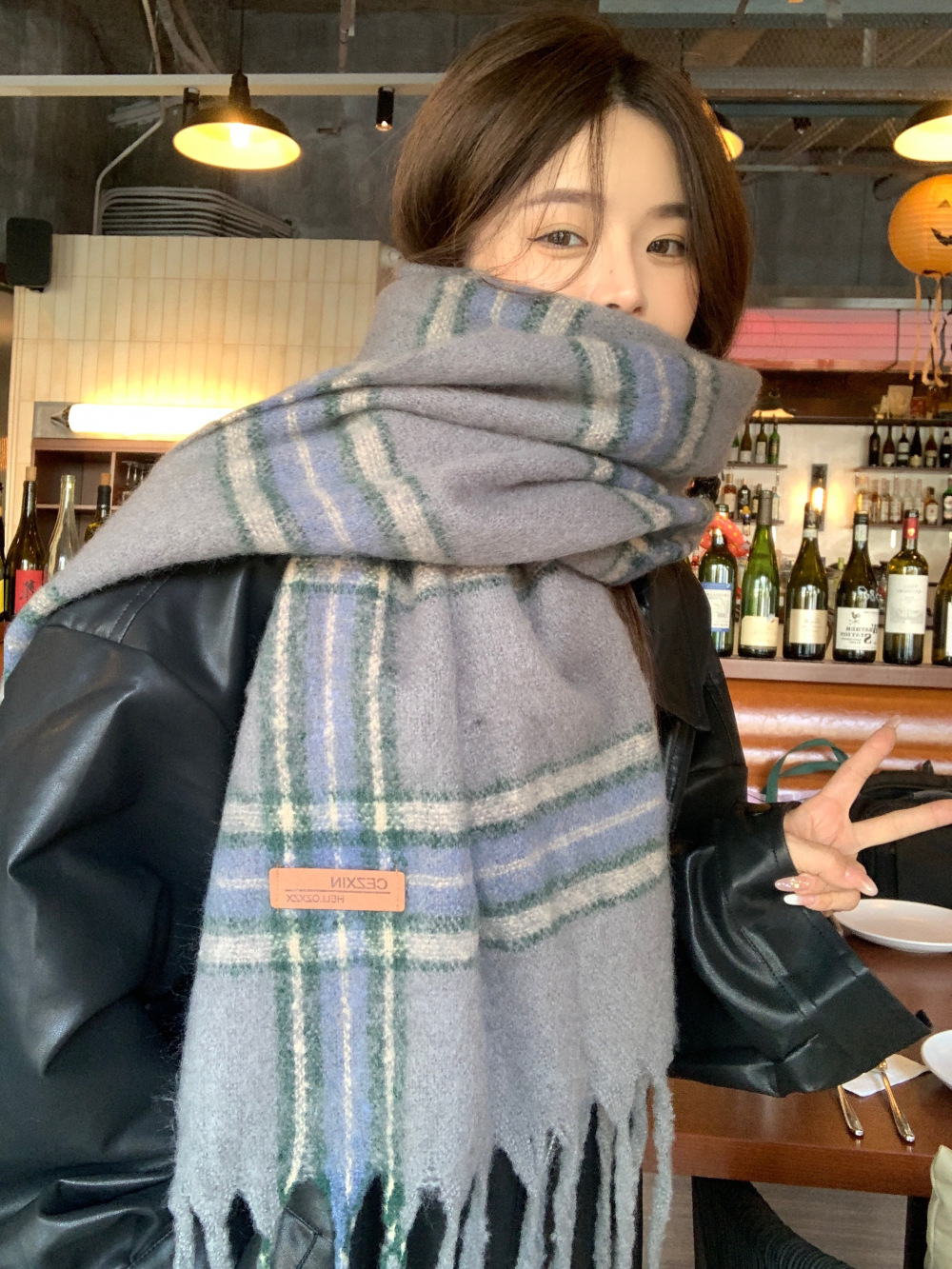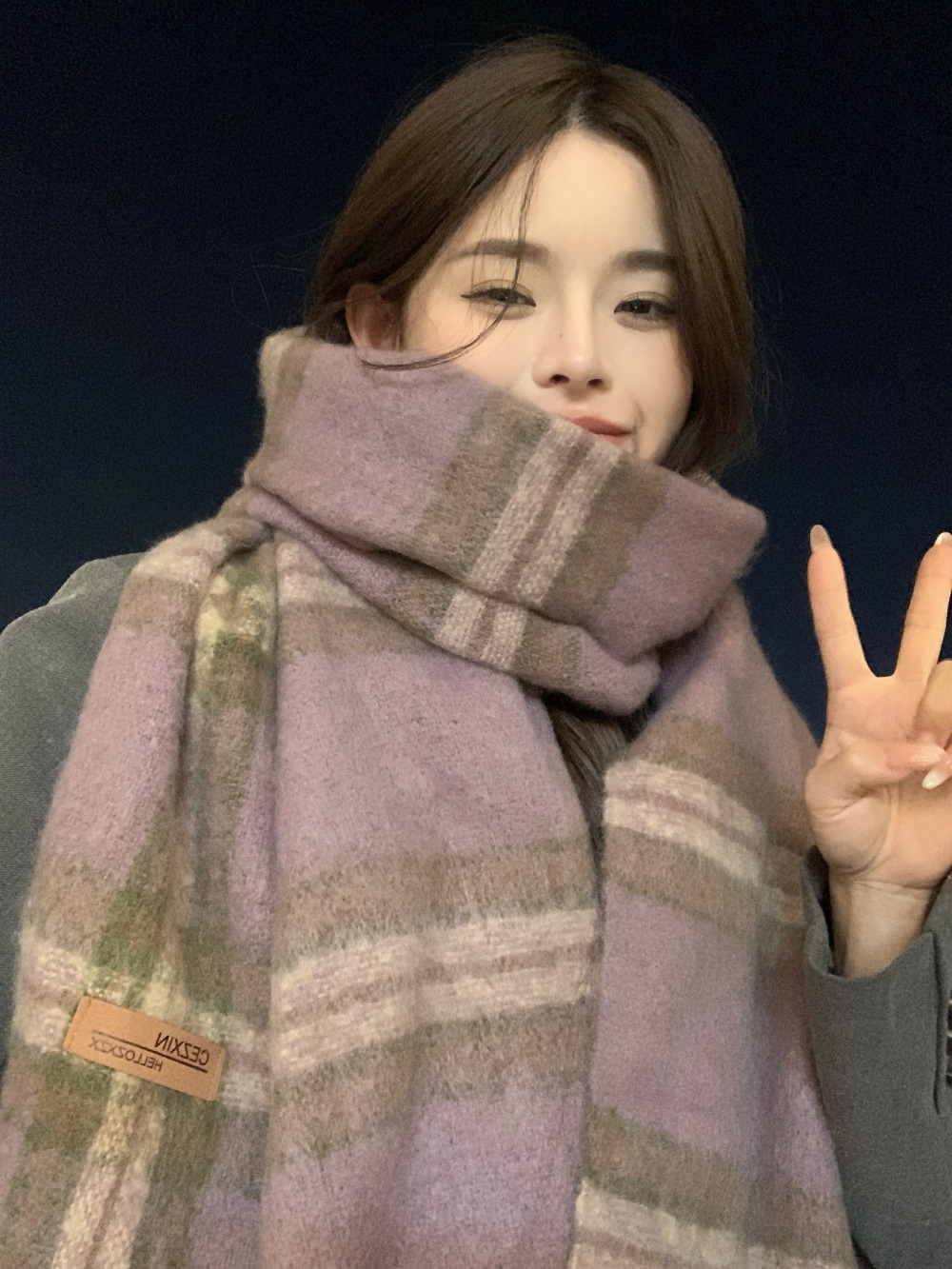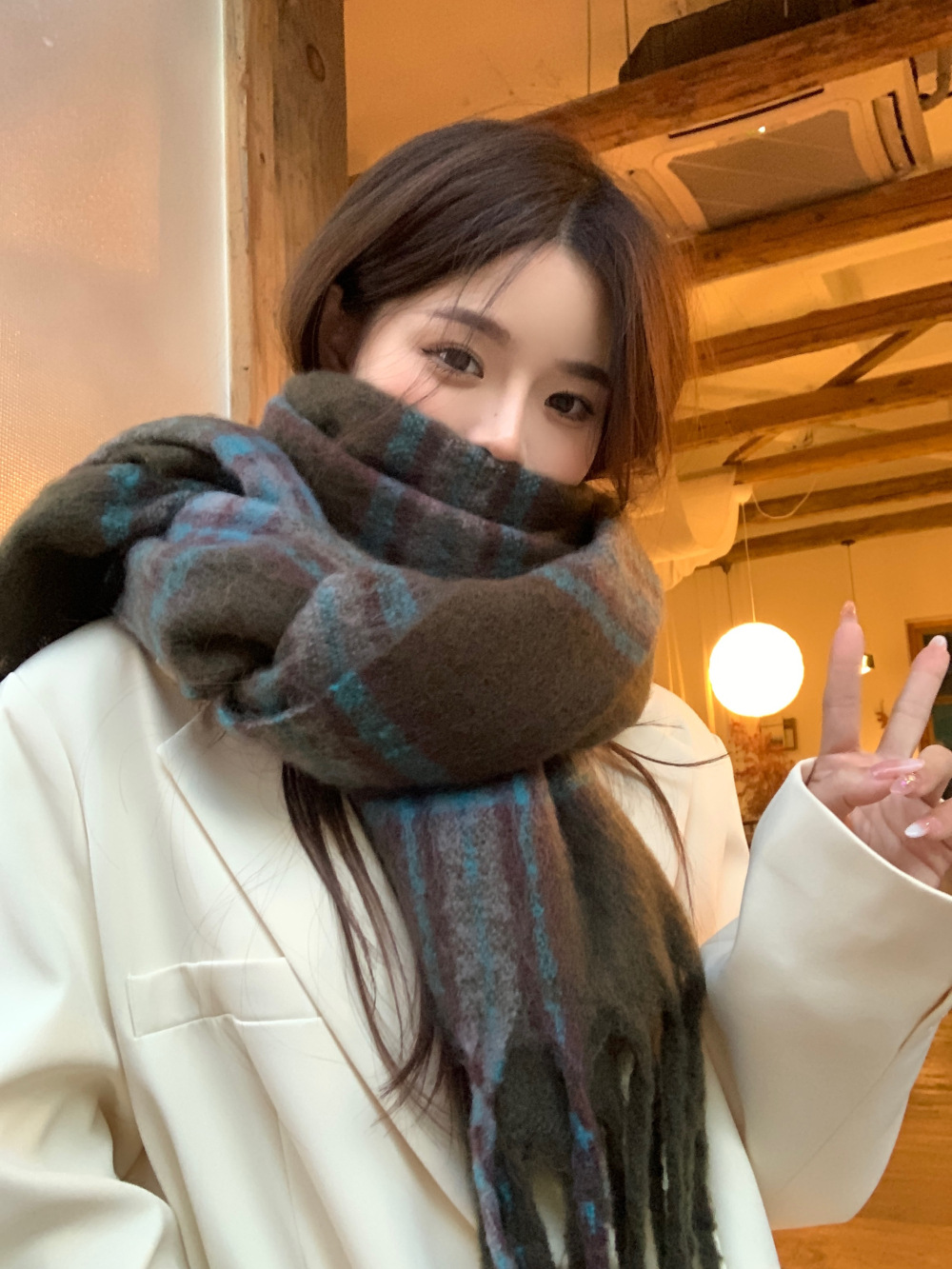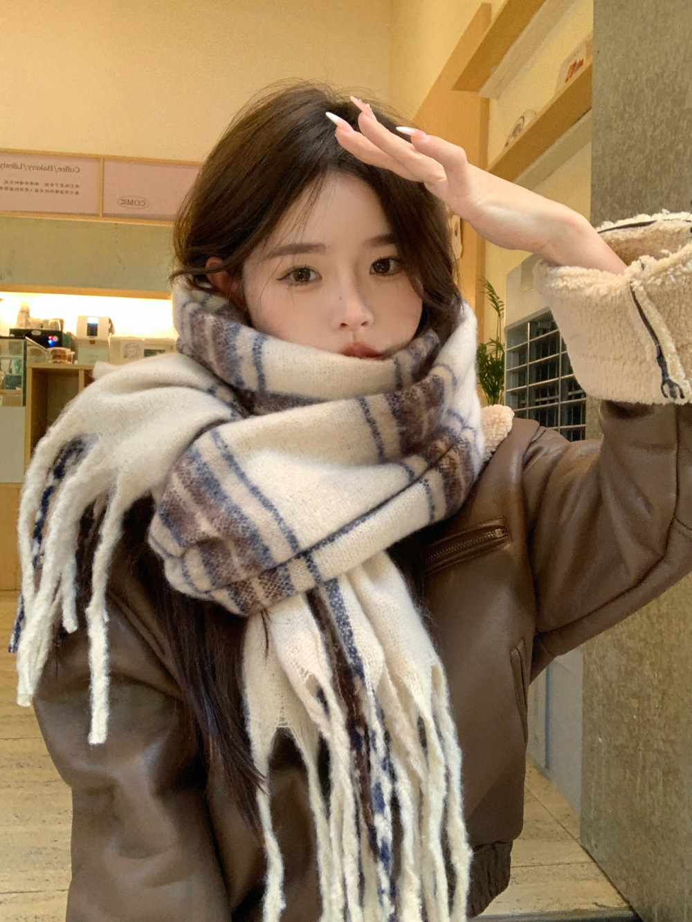 가을과 겨울의 여자 쿨 스카프 따뜻한 두꺼운 니트 스카프 커플의 올매치 한국식 격자 무늬 모헤어 목도리스토어 가기