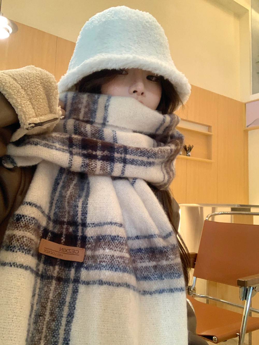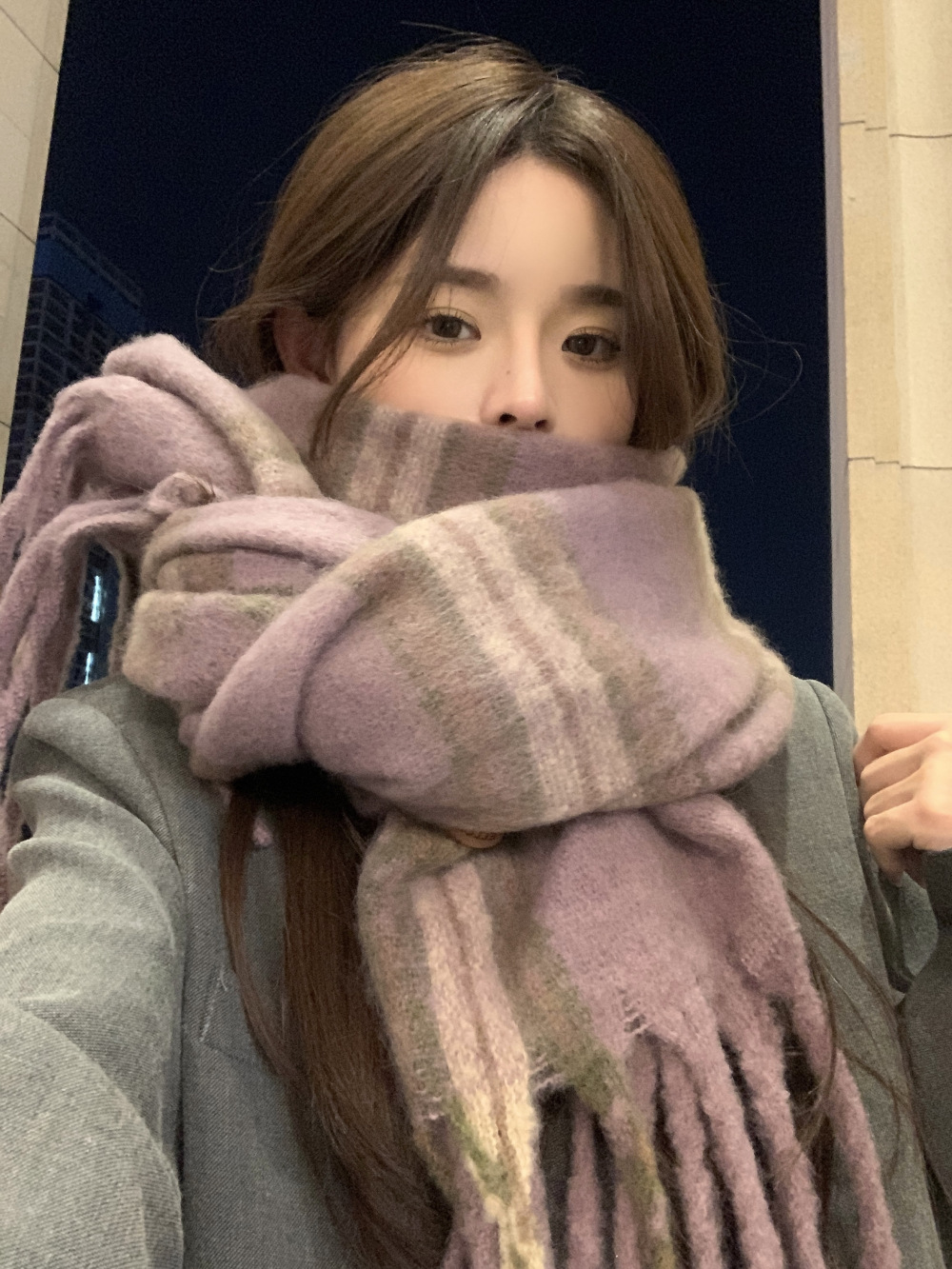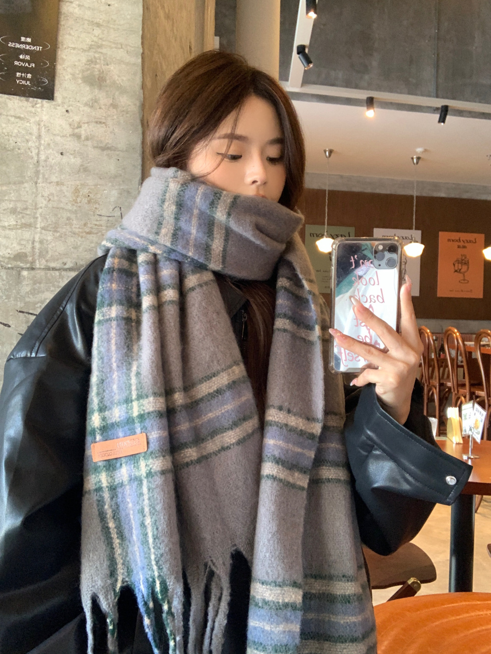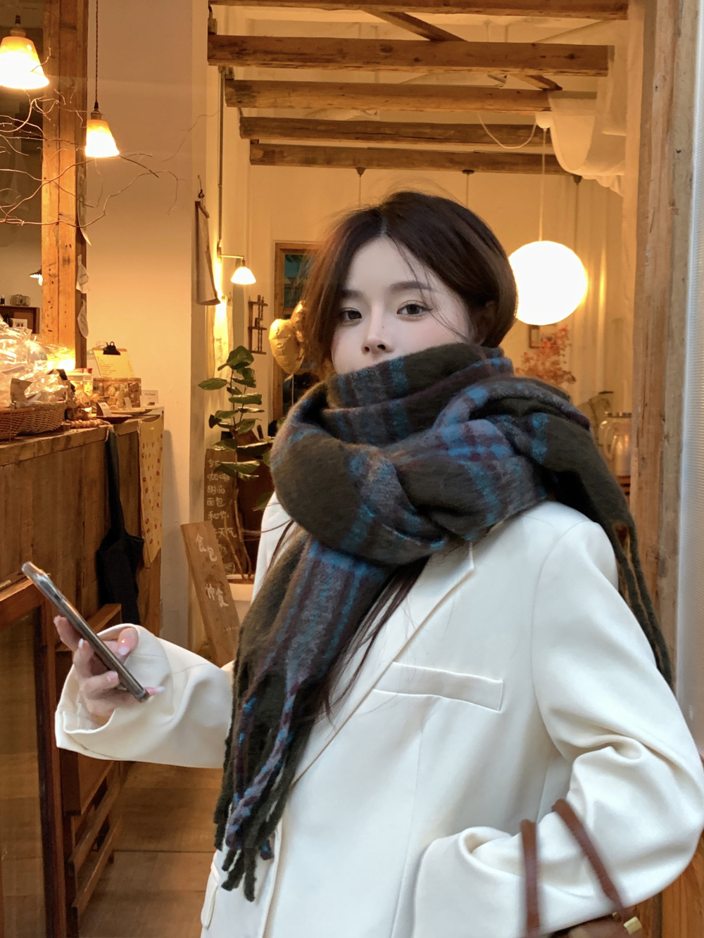 가을과 겨울의 여자 쿨 스카프 따뜻한 두꺼운 니트 스카프 커플의 올매치 한국식 격자 무늬 모헤어 목도리스토어 가기