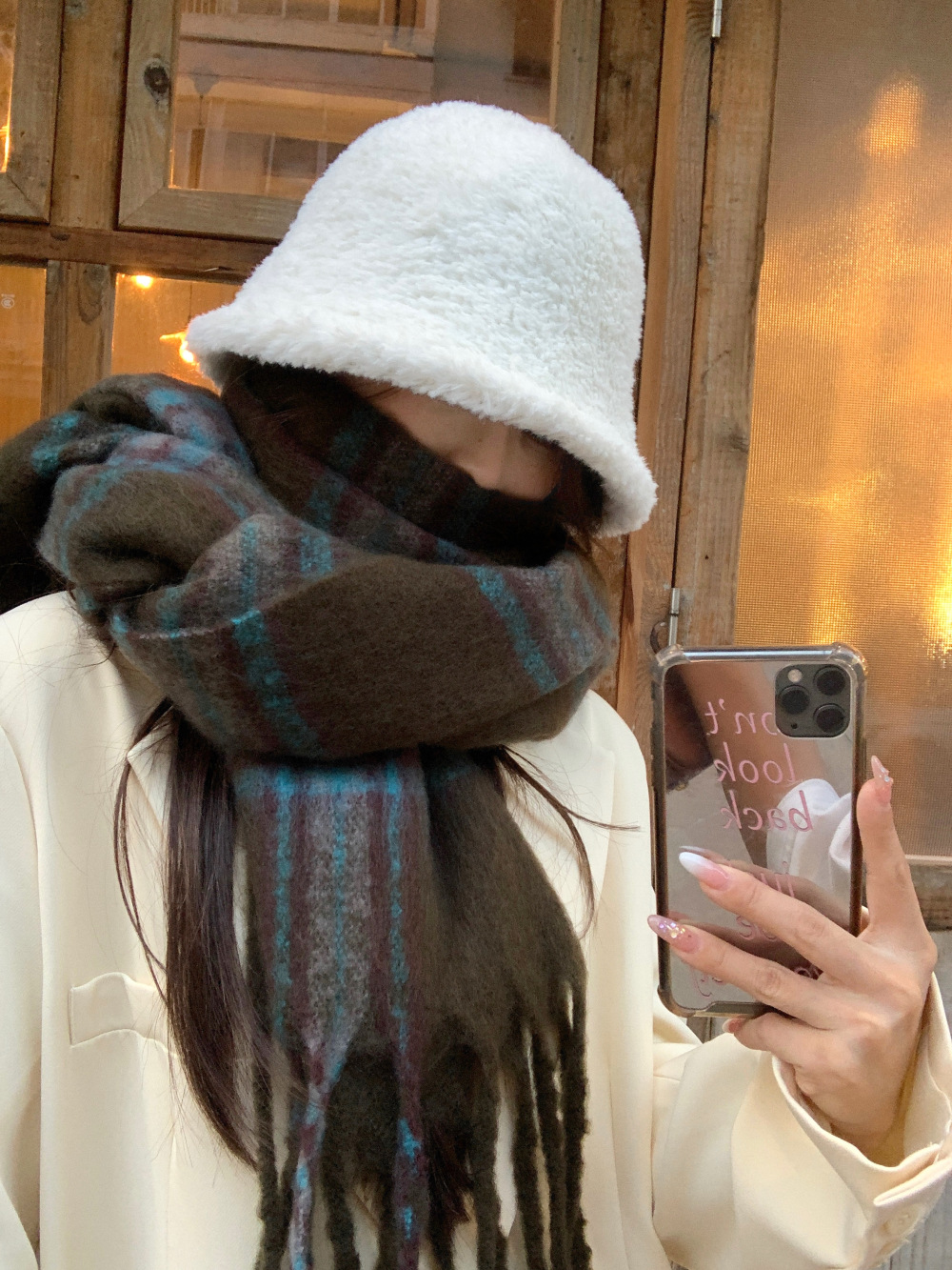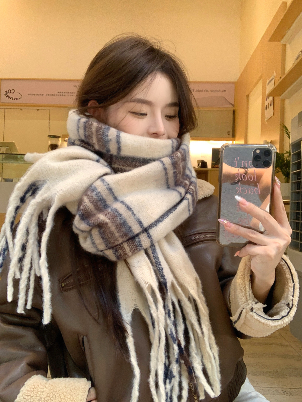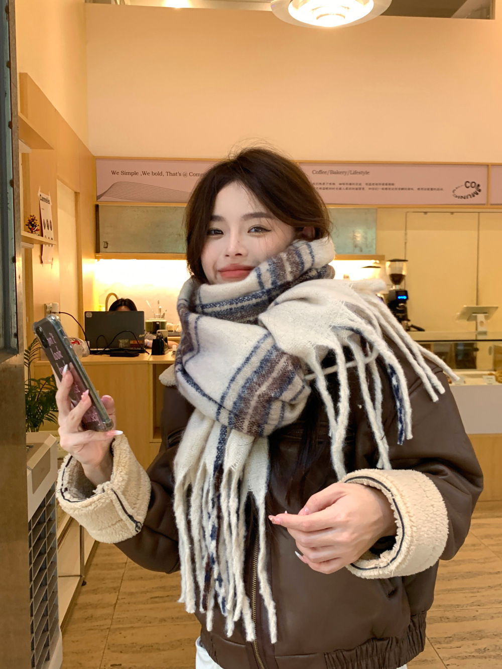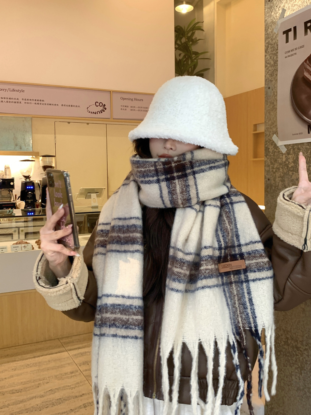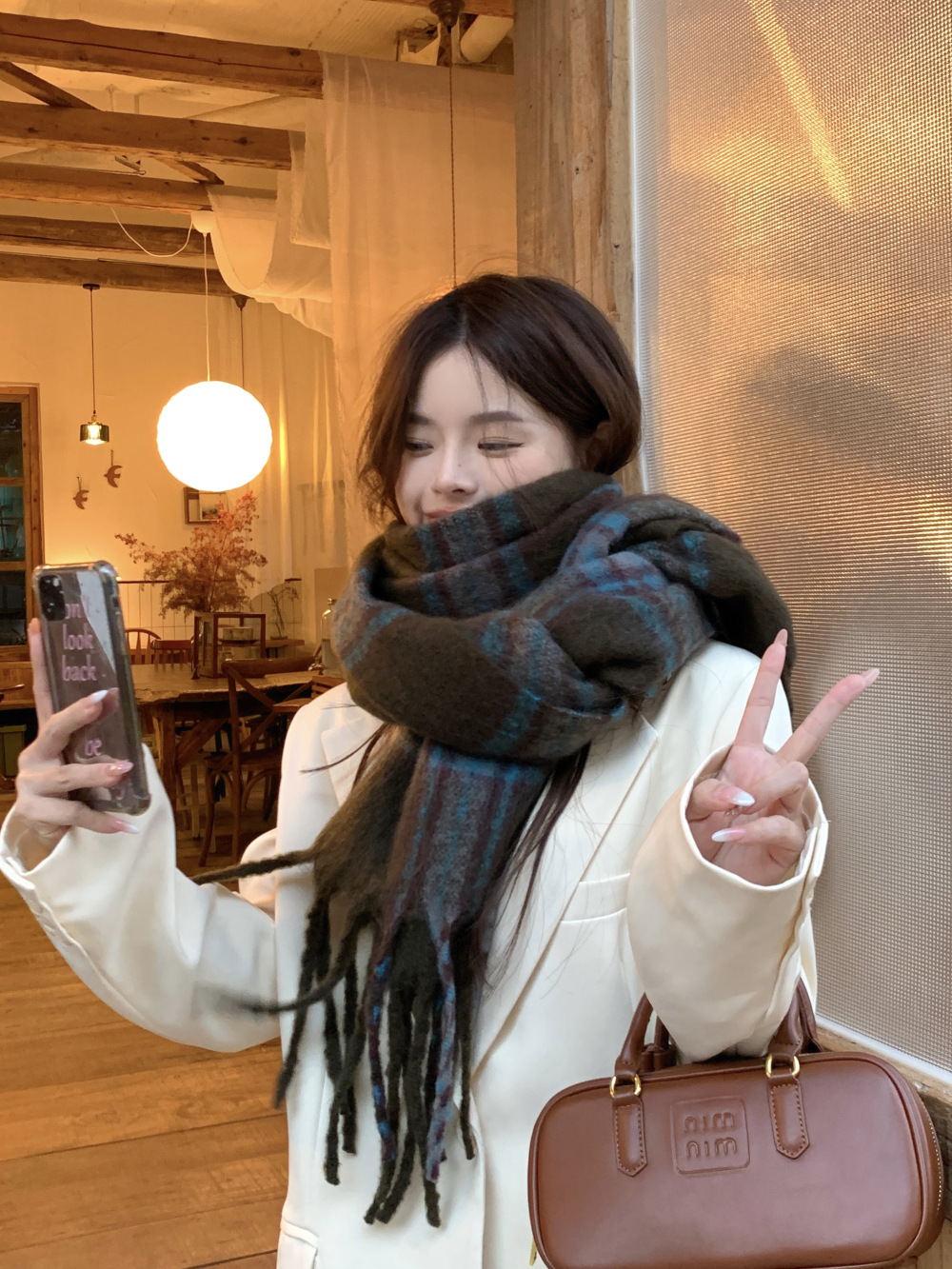 가을과 겨울의 여자 쿨 스카프 따뜻한 두꺼운 니트 스카프 커플의 올매치 한국식 격자 무늬 모헤어 목도리스토어 가기
