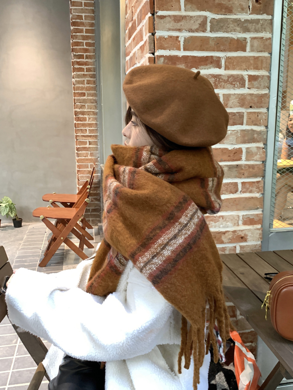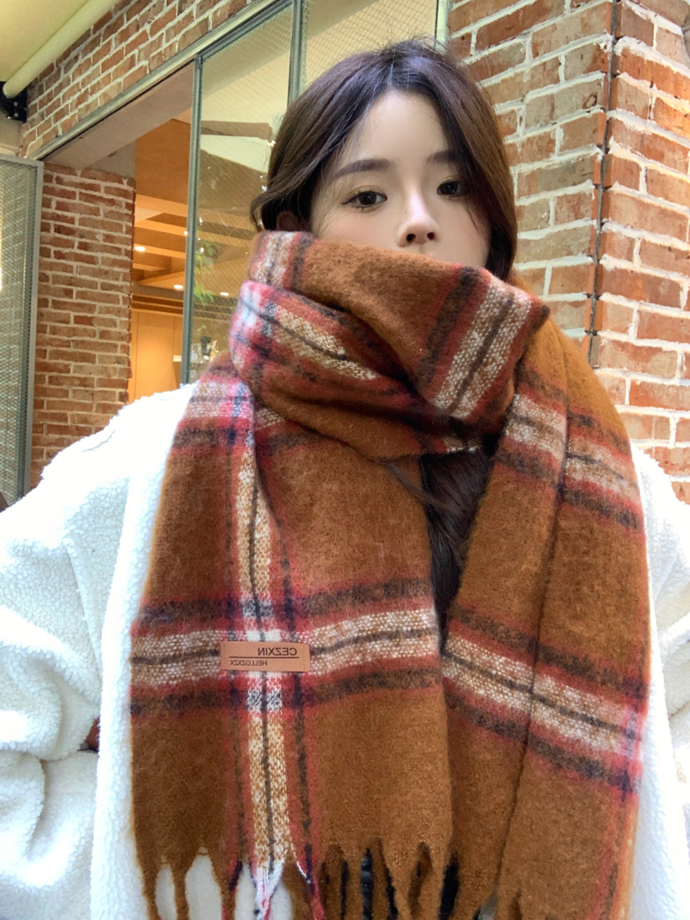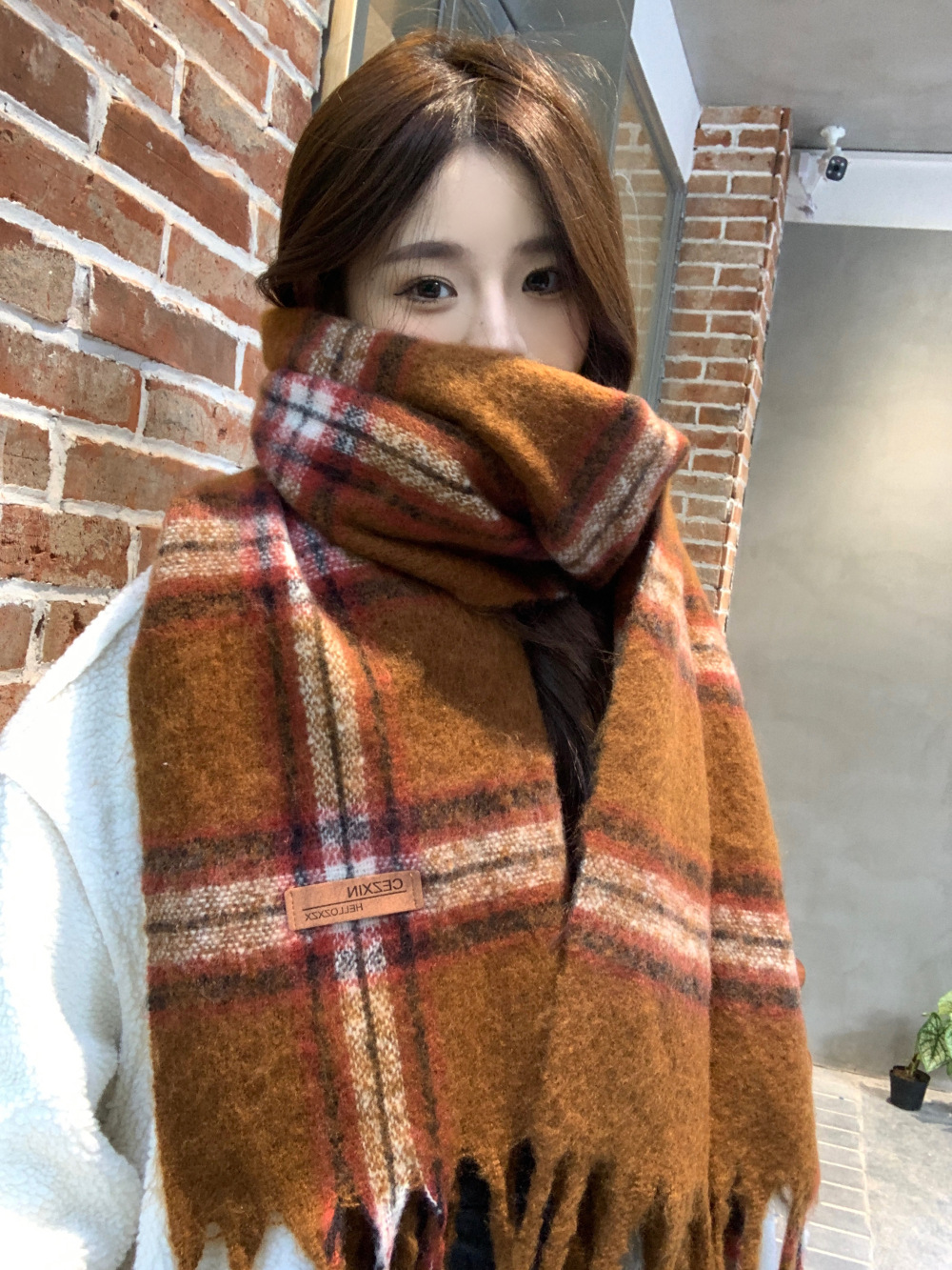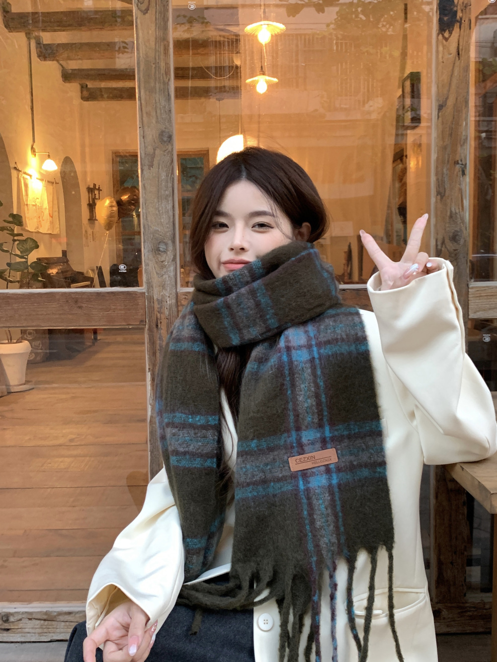 가을과 겨울의 여자 쿨 스카프 따뜻한 두꺼운 니트 스카프 커플의 올매치 한국식 격자 무늬 모헤어 목도리