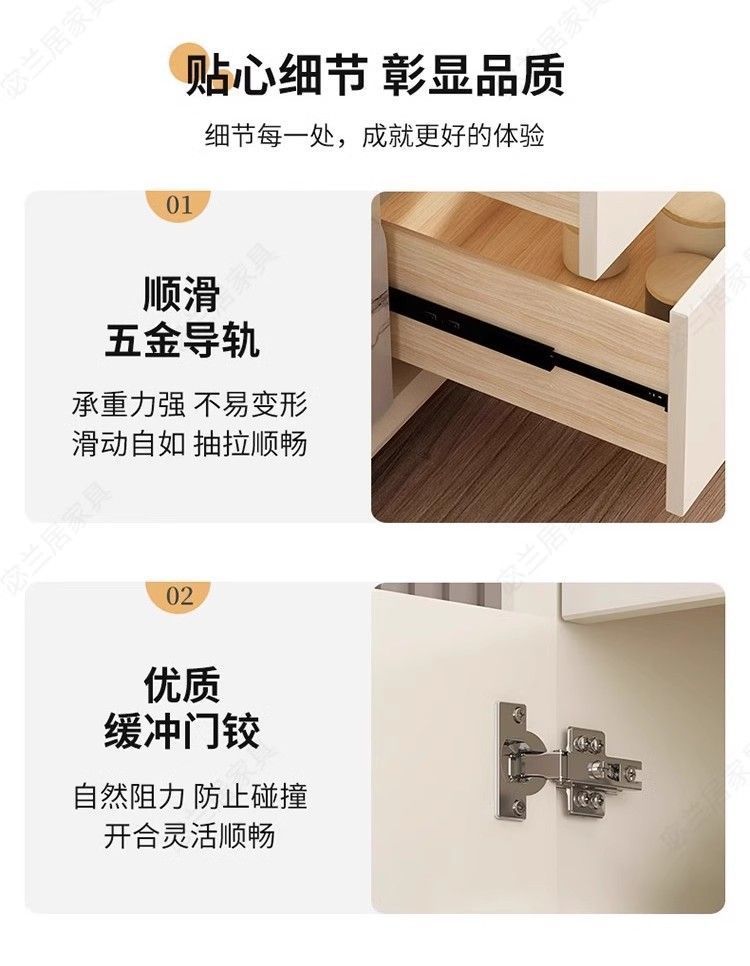 • 모서리가 둥근 전체 원목 보드 220 클라우드 그레이 + 흰색 도어 서랍 [설치 포함]