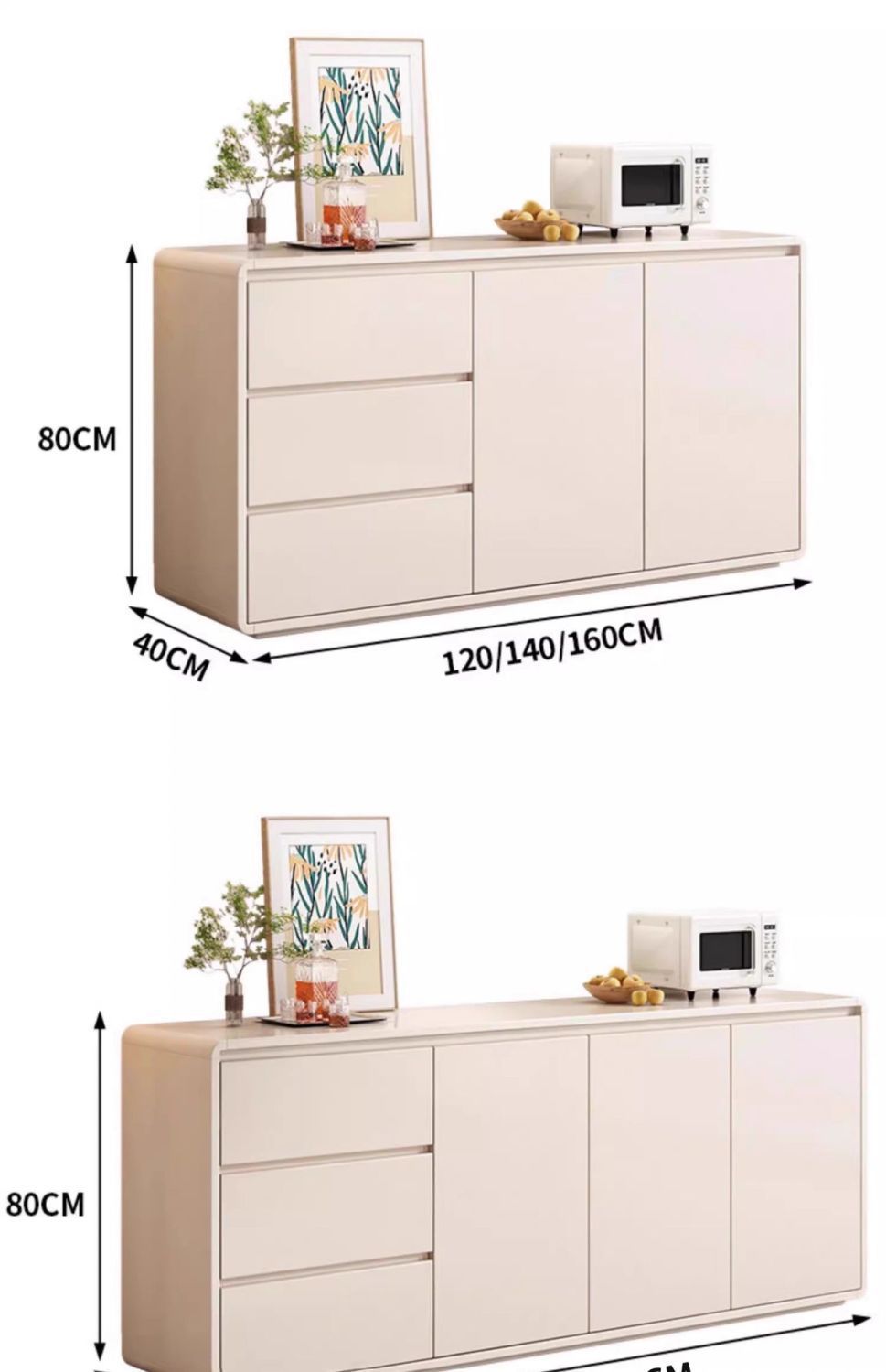 • 모서리가 둥근 전체 원목 보드, 140 클라우드 그레이 + 흰색 도어 서랍 [설치 포함]