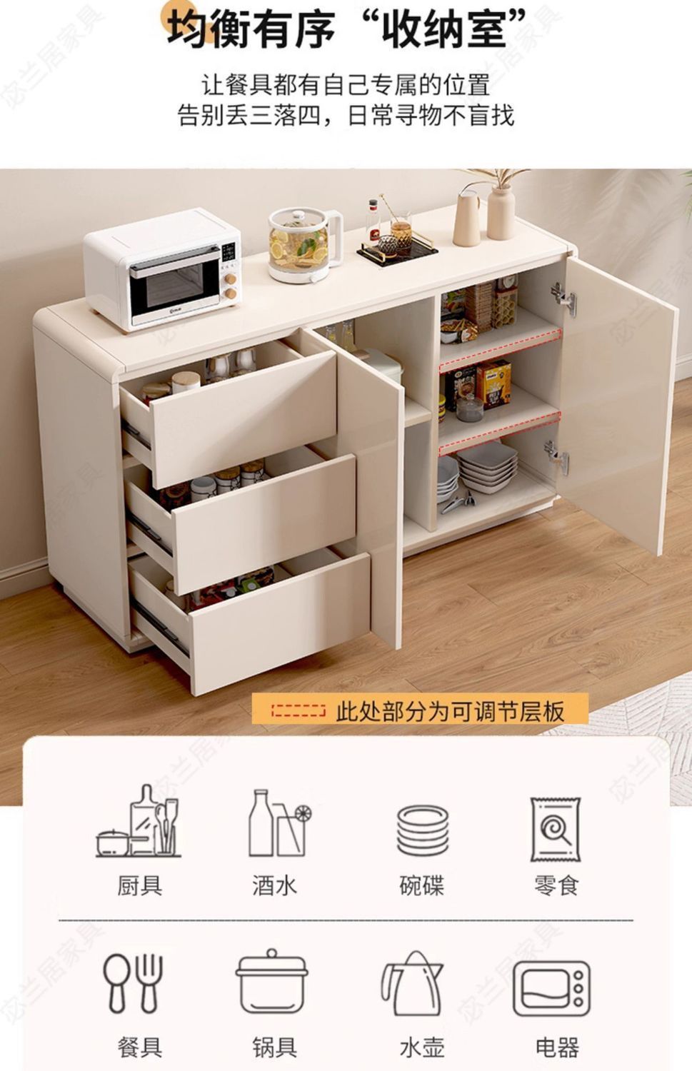 크림 스타일 풀 솔리드 우드 사이드 보드 가정용 멀티 레이어 스토리지 캐비닛 새로운 스타일의 거실 간단한 현대 그레이 티 캐비닛스토어 가기