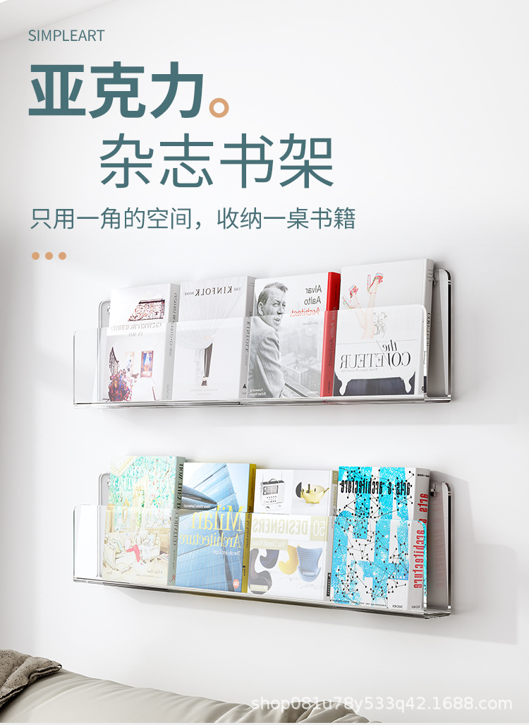 벽 가정용 간단한 스타일 디스플레이 랙 소파 후면 스토리지 랙 책장 기숙사 투명 한 한 문자 보드 그림책 잡지 랙