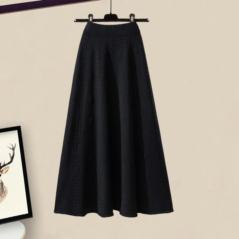 • 빨간색 스웨터 + 검은색 스커트 투피스 세트